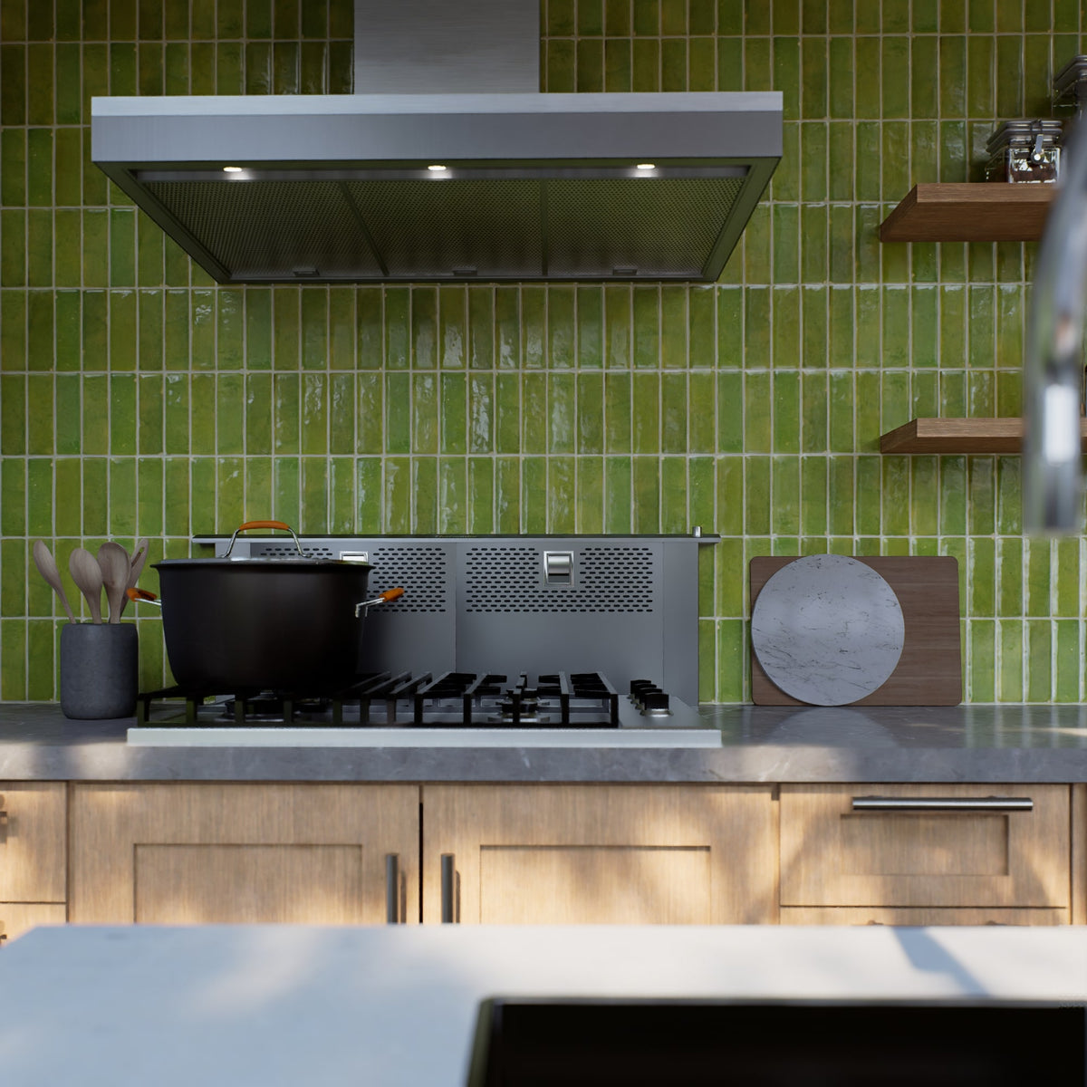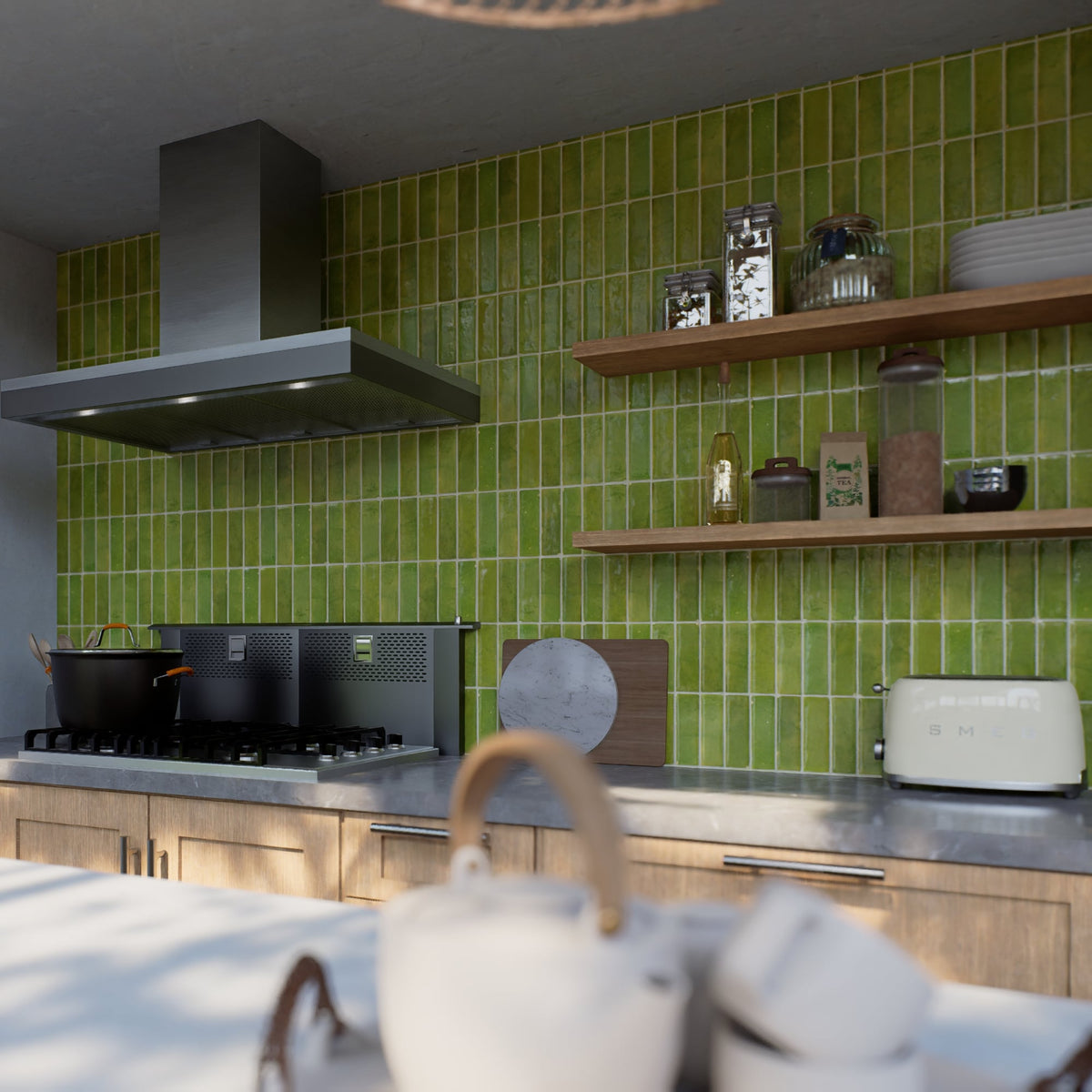 Elevate your space with the fresh, natural beauty of our Cardamom Zellige Tile in a 2x6 rectangle format. Each Zellige tile, handcrafted with care from Moroccan clay, brings the lush green tones of a thriving herb garden to your walls. The slender 2x6 size opens up endless possibilities for creative layouts, from timeless subway patterns to bold, modern designs. Perfect for a kitchen backsplash, a spa-like bathroom, or a feature wall that draws the eye, Cardamom Zellige adds an inviting, artisanal touch that feels both grounded and vibrant.