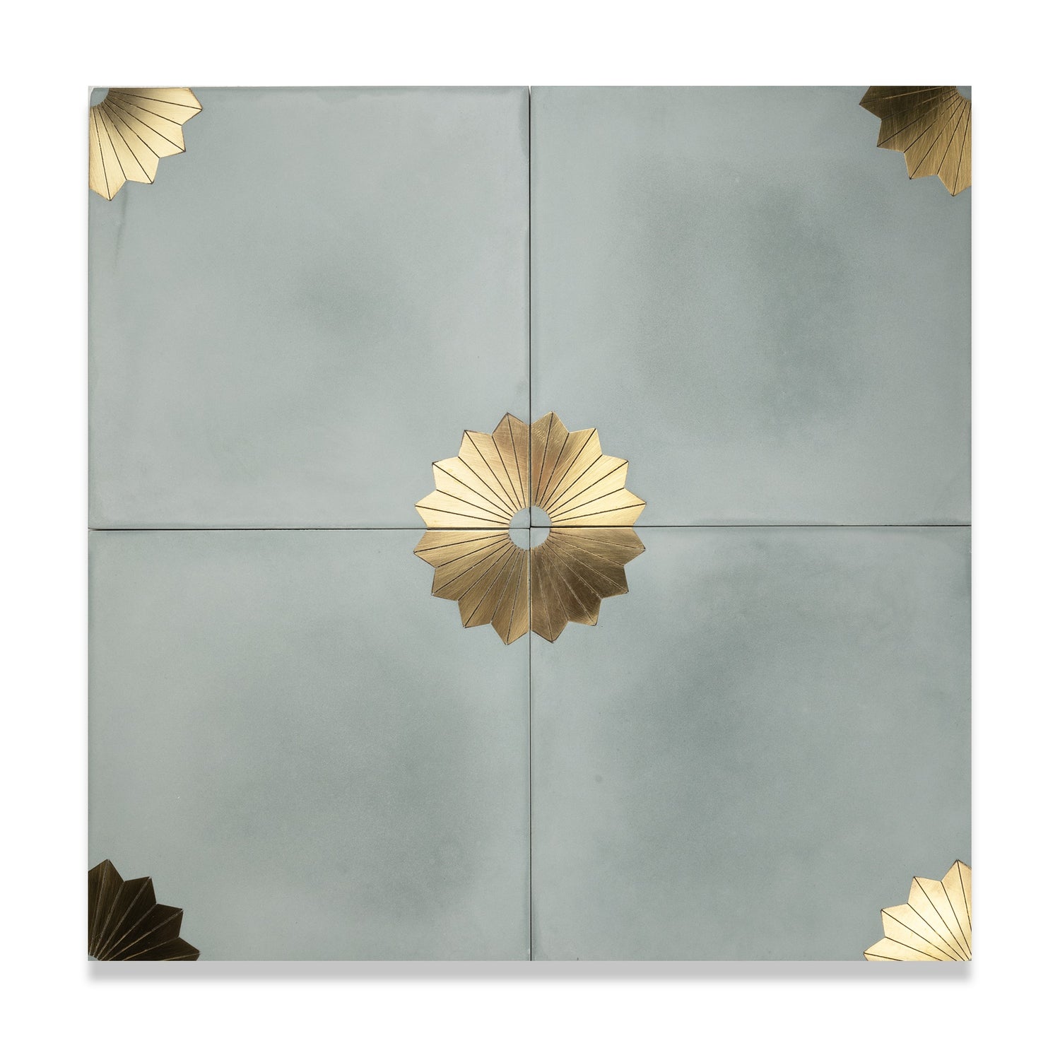 Inspired by the freshly blossomed magnolia flower, the Magnolia Cement Tile brings a touch of natural elegance to any space. Featuring an etched brass accent that dazzles in the light, this 8” x 8” handcrafted cement tile is available in two elegant variations. Perfect for walls, floors, or backsplashes, the Magnolia Tile combines floral beauty with durable craftsmanship, creating a stunning focal point in any room.