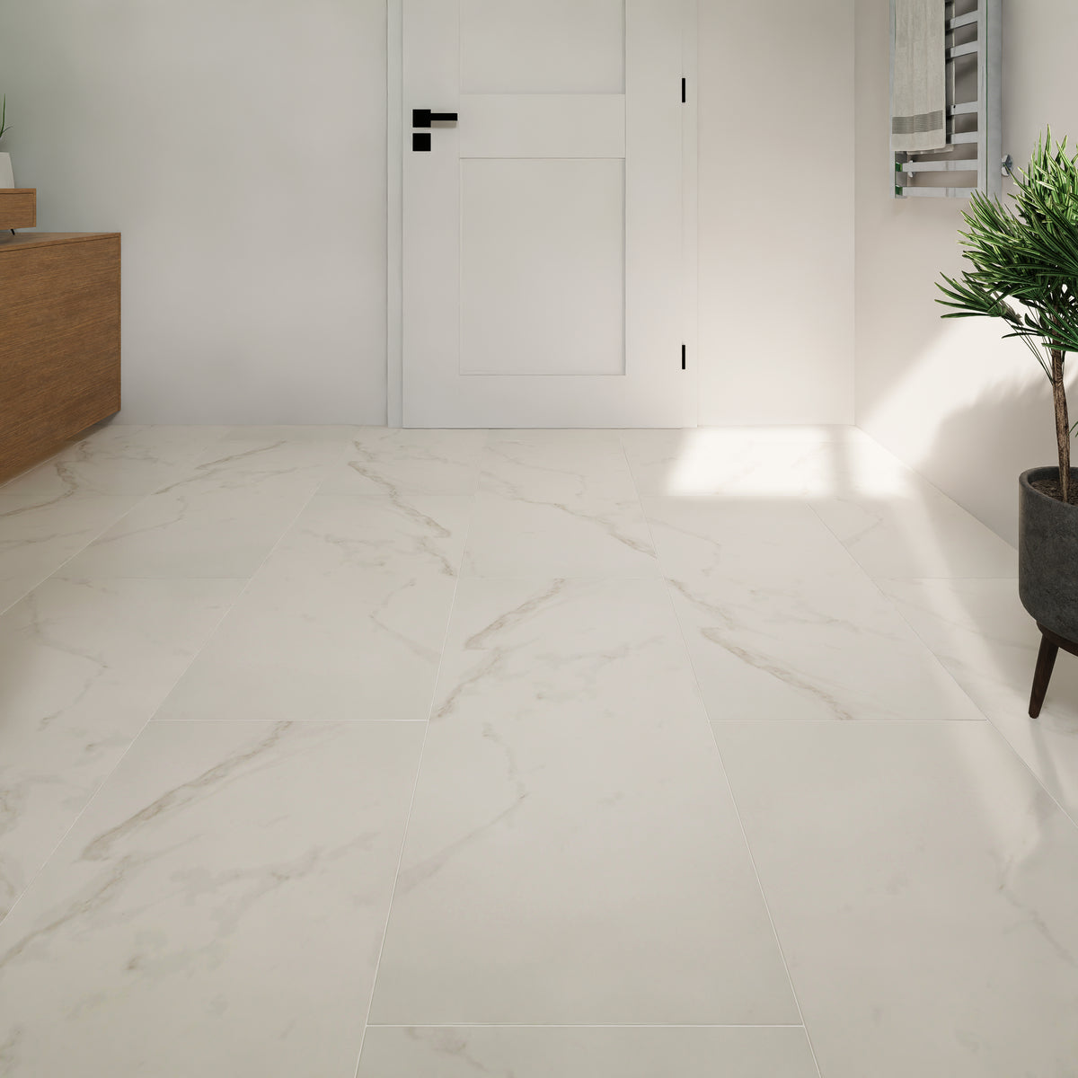 Fiore di Marmo brings the elegance of fine Italian marble into a sleek 12x24 porcelain tile with 3/8” thickness. Delicate veining graces its soft white surface, creating a timeless look that complements both classic and modern spaces. Part of the Renaissance Porcelain Collection, this tile is available in two distinct faces, ensuring a natural variation that enhances its luxurious appeal.