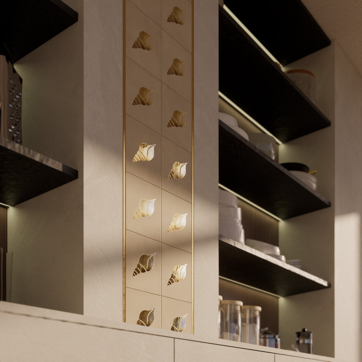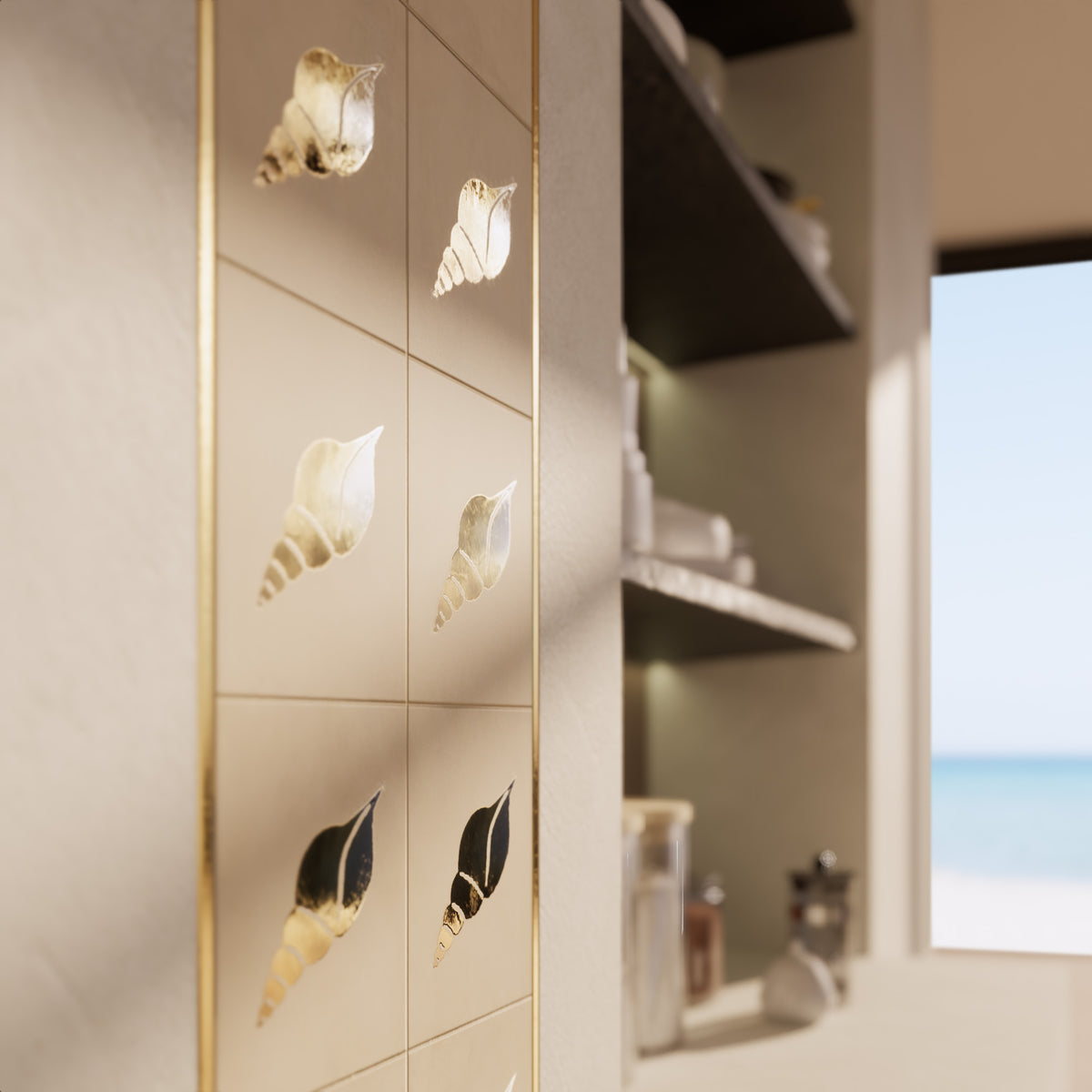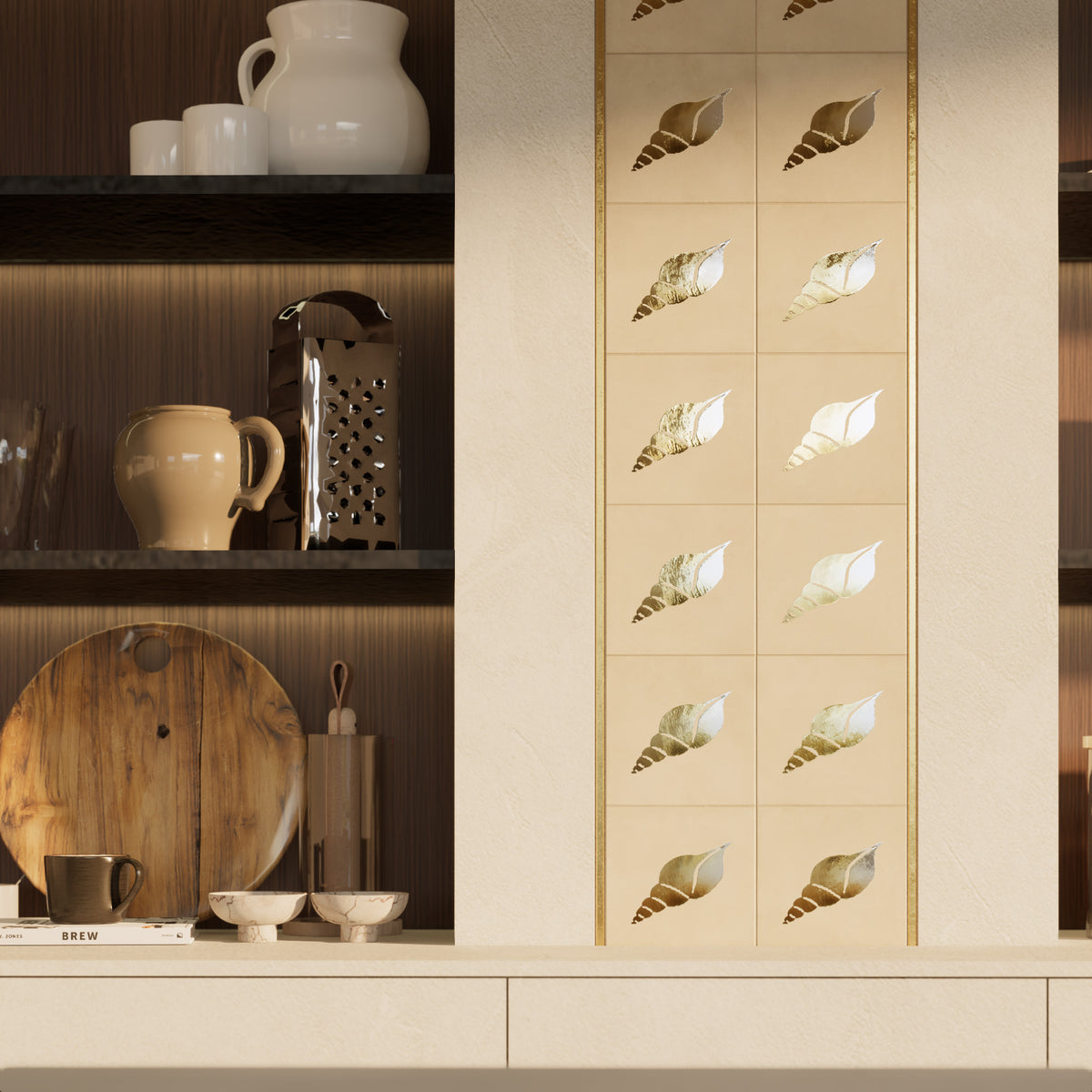 Inspired by the legendary sea god, Triton 3 and Triton 4 embody the strength and elegance of the ocean’s ever-changing tides. These 8x8 handcrafted cement tiles feature bold, flowing designs accented with shimmering brass inlays, evoking the movement of waves and the mystique of deep-sea currents.
