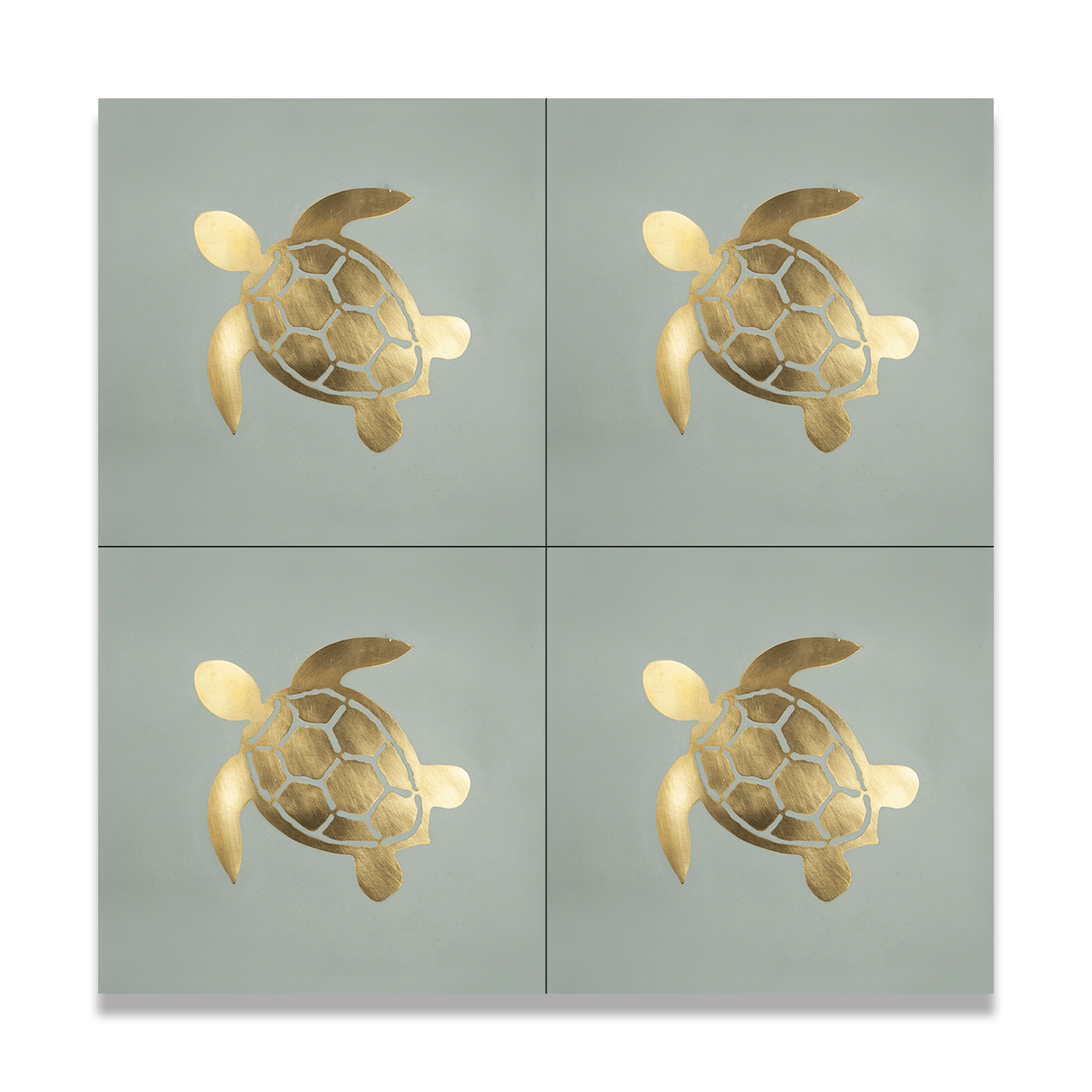 Symbolizing wisdom, endurance, and the deep mysteries of the sea, Turtle 3 and Turtle 4 bring the serene beauty of ocean life into your space. These 8x8 handcrafted cement tiles feature graceful turtle motifs, their gentle forms accentuated by shimmering brass inlays that catch the light like sun dancing on the water.