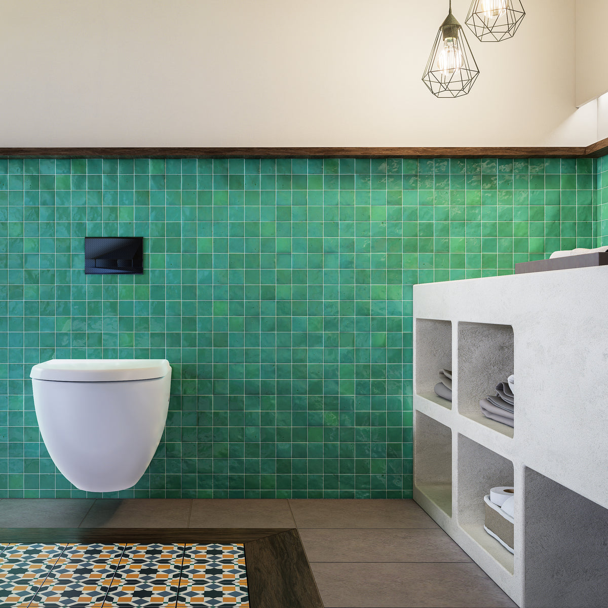 Bring the tranquility of flowing water into your home with the River Green Zellige Tile in a 2x2 mosaic format. These tiles, crafted from natural Moroccan clay and mounted on a 12x12 sheet for easy installation, capture the essence of rushing Moroccan rivers and bring a refreshing element to your space.