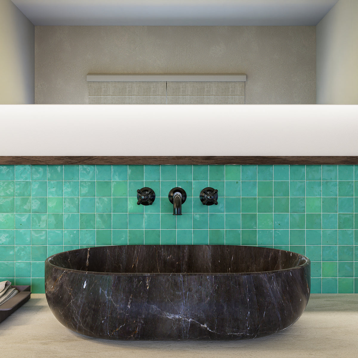Maintenance: Zellige tiles are low maintenance. Clean tiles with mild soap and water.