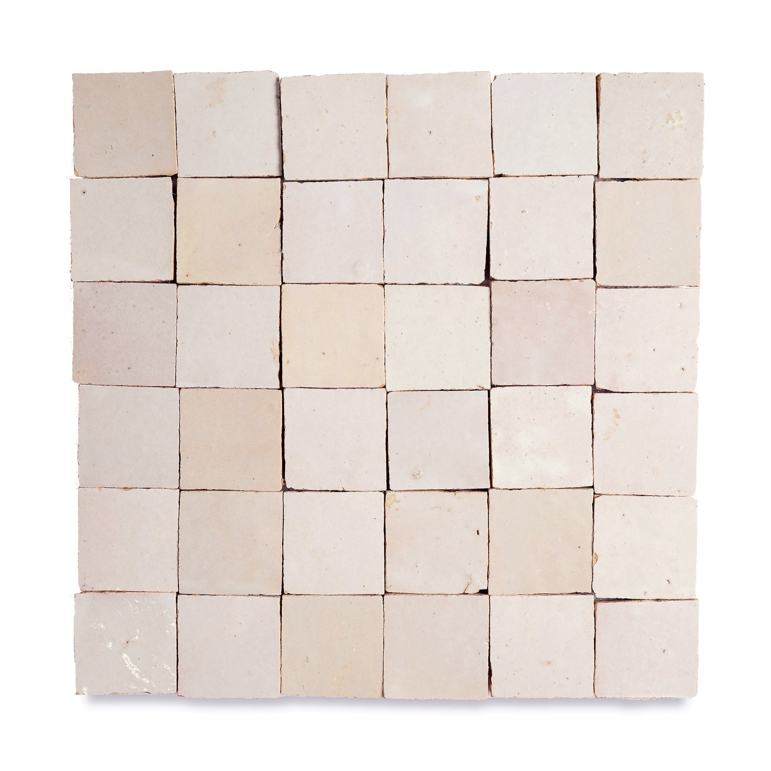 Step into the warm embrace of Moroccan craftsmanship with the Linen Beige Zellige Tiles in a 2x2 mosaic format. Carefully crafted from natural Moroccan clay, these tiles are mounted on a 12x12 sheet for effortless installation, reminiscent of rows of linen fabrics displayed for sale at a traditional Moroccan bazaar.
