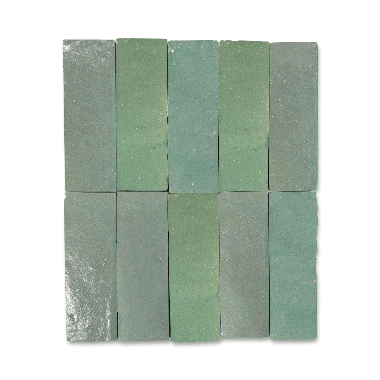 Sprinkle peace into your space with the Sage Dust Zellige Tile in a 2x6 Bejmat size. Handcrafted from natural Moroccan clay, these elongated tiles are perfect for creating soothing and natural designs that reflect the soft green hue of Moroccan sage leaves.