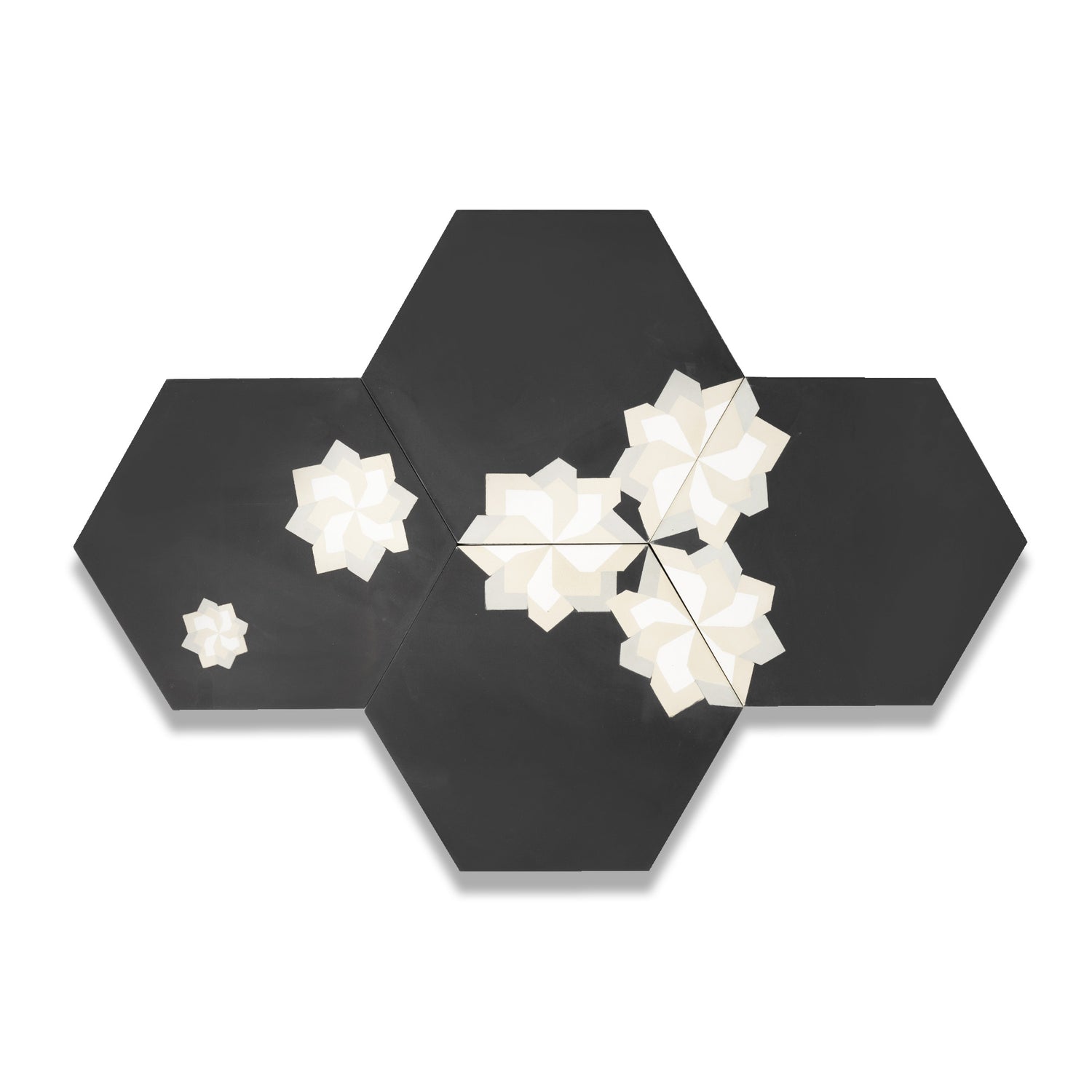 Inspired by the intricate folds of an origami flower, the Fiori Cement Tile brings a touch of delicate beauty to any space. These 8” x 9” hexagonal cement tiles can be arranged in multiple ways, allowing for endless design possibilities—whether you prefer a busy or more sporadic pattern. We recommend pairing the Fiori Tile with plain-colored tiles for a truly stunning effect, perfect for walls, floors, or backsplashes.