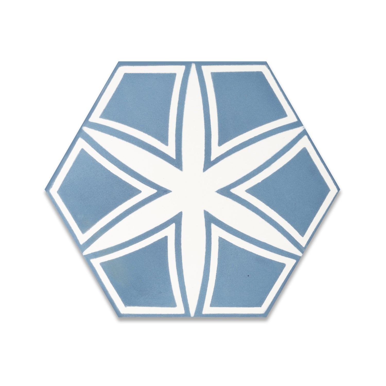 The Rise Hexagon Cement Tile brings a sunny disposition to your space with its bright starburst design. Handcrafted from premium cement and available in 7 variations, including metallic versions made from brass, aluminum, and copper, this tile is perfect for brightening backsplashes or redefining bathrooms. The 6” x 7” Rise Tile delivers both vibrant beauty and durable craftsmanship, making it a standout choice for any room.