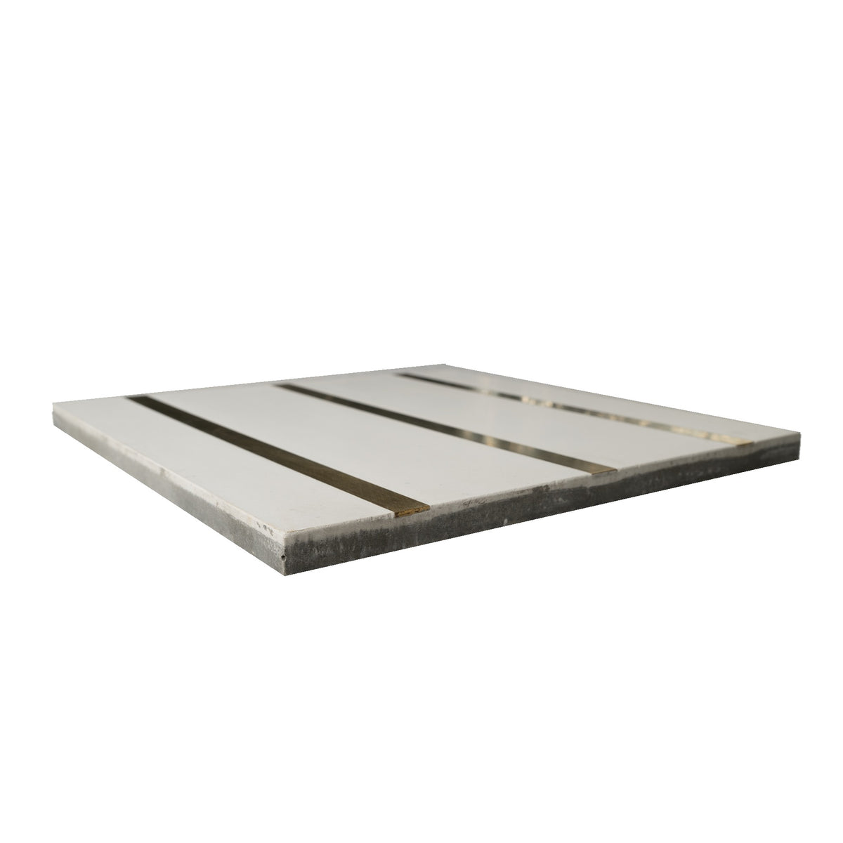 PLEASE NOTE: Cutting the brass inserts in our brass embedded tiles is not recommended and is very difficult to do so. Please consider this when designing your space. Matching solid tiles are available to compleement brass tiles and may be used as cutting pieces instead.
