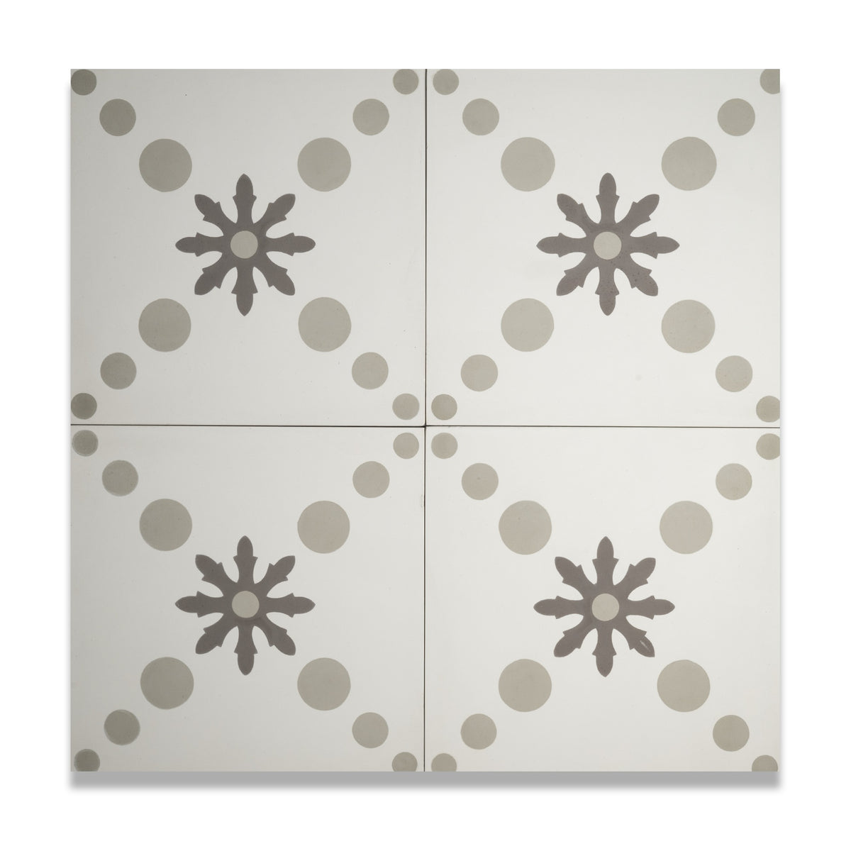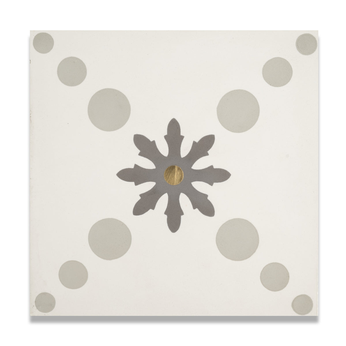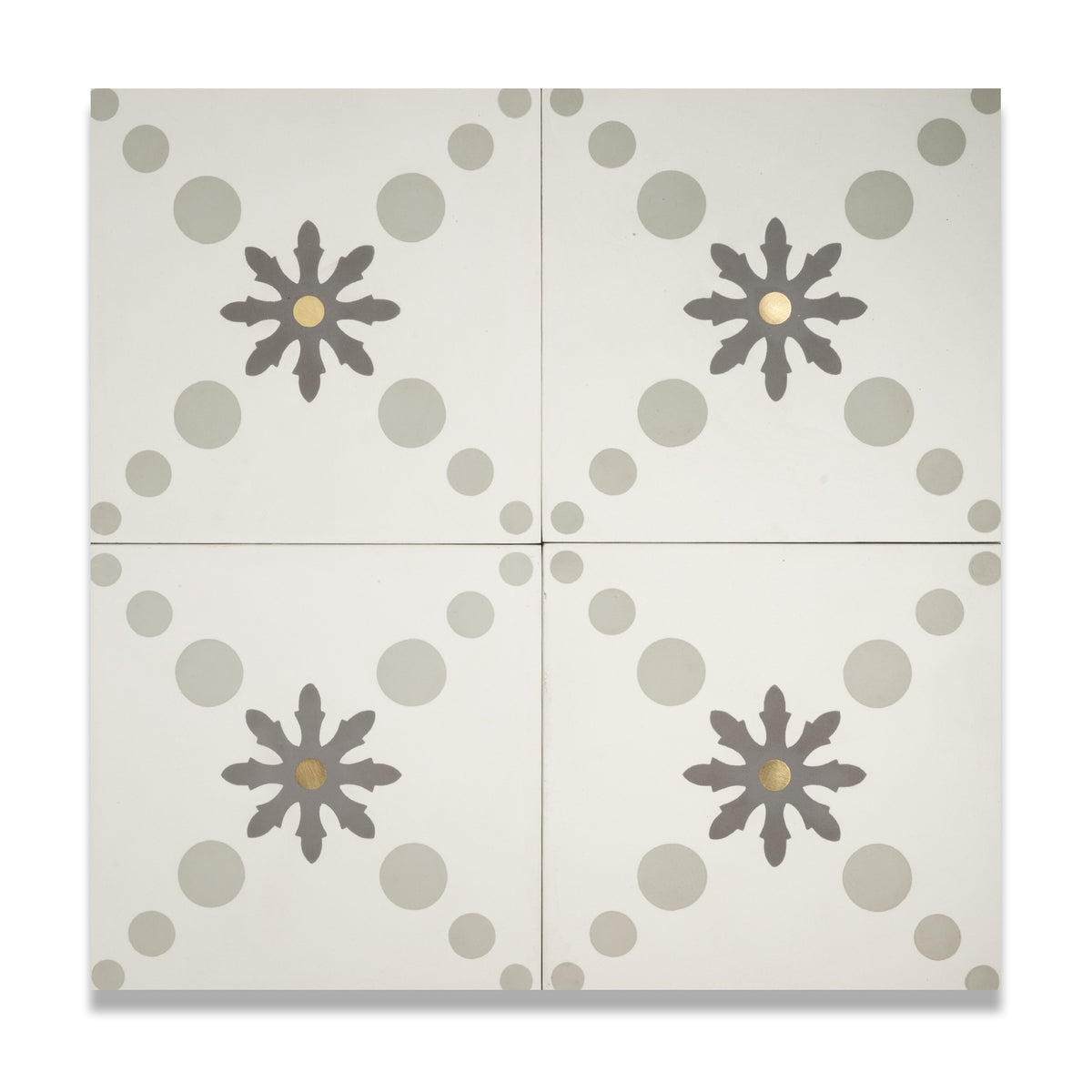 The Chantal Cement Tile brings a delicate and charming design to any space, enhanced by a subtle touch of brass for added elegance. Handcrafted from premium cement, this tile’s playful yet modern pattern is perfect for creating a refined and sophisticated atmosphere. Whether used on walls, floors, or backsplashes, this 8” x 8” encaustic tile pattern adds a pristine and luxurious touch to any room.