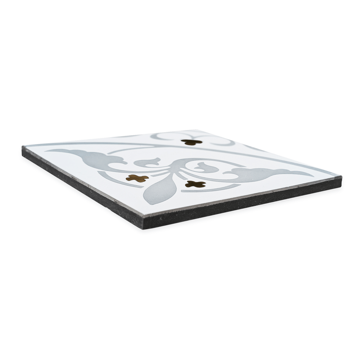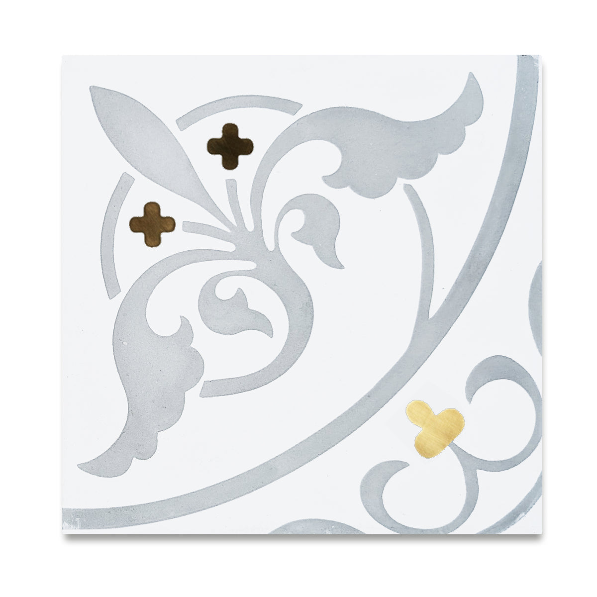 The Dore Cement Tile offers a delicate, patterned design with an elegant brass touch. Crafted from premium cement, this tile is perfect for traditional spaces seeking a refined yet understated look. Available with or without brass inserts, the Dore Tile brings a soft elegance to walls, floors, or backsplashes while providing long-lasting durability.