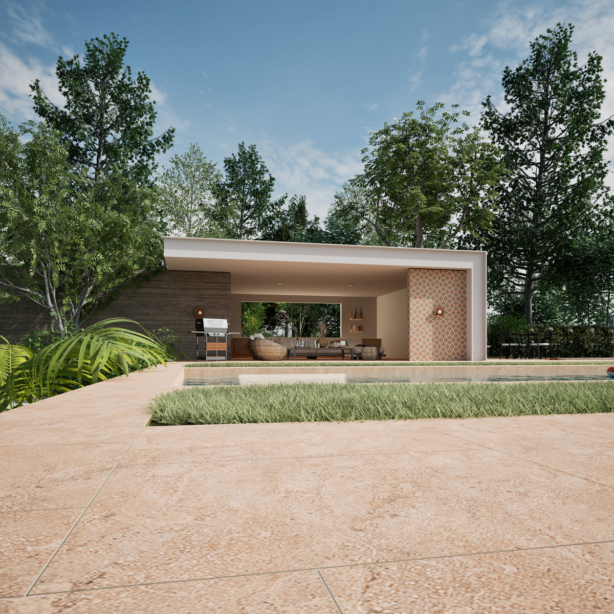 Golden, grounding, and just the right amount of bold—Ginger is the warmth your outdoor space craves. Like a dash of spice in a cup of tea, it adds richness and depth, turning gardens, patios, and courtyards into places of comfort and connection. Designed as part of the LiLi Garden Collection, its modular pattern (2 pcs 24”x36”, 1 pc 24”x24”, 1 pc 12”x24”) flows effortlessly, creating a foundation that feels organic and timeless. With the soul of natural stone and the strength of porcelain, Ginger invites you to settle in, soak up the sun, and savor the moment.