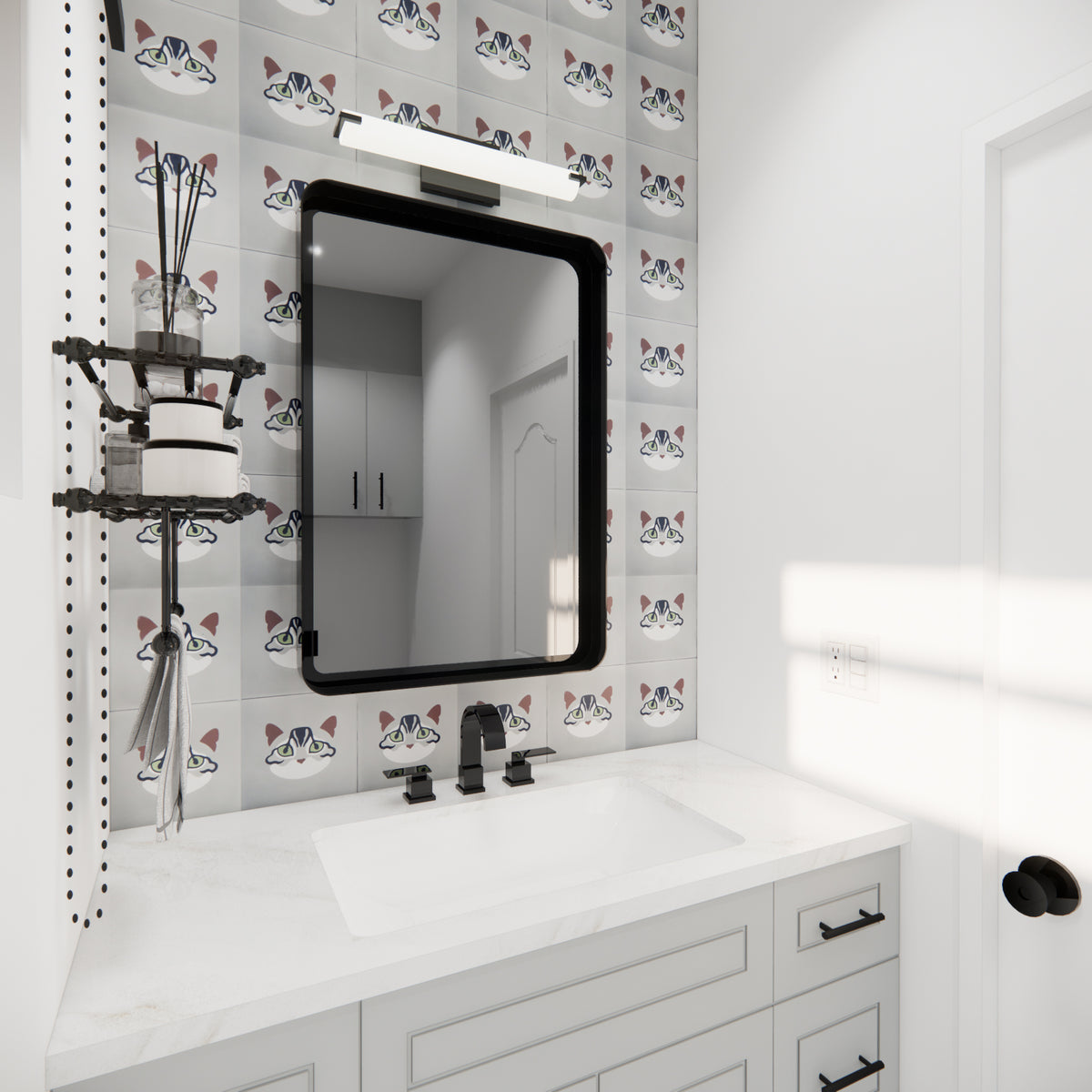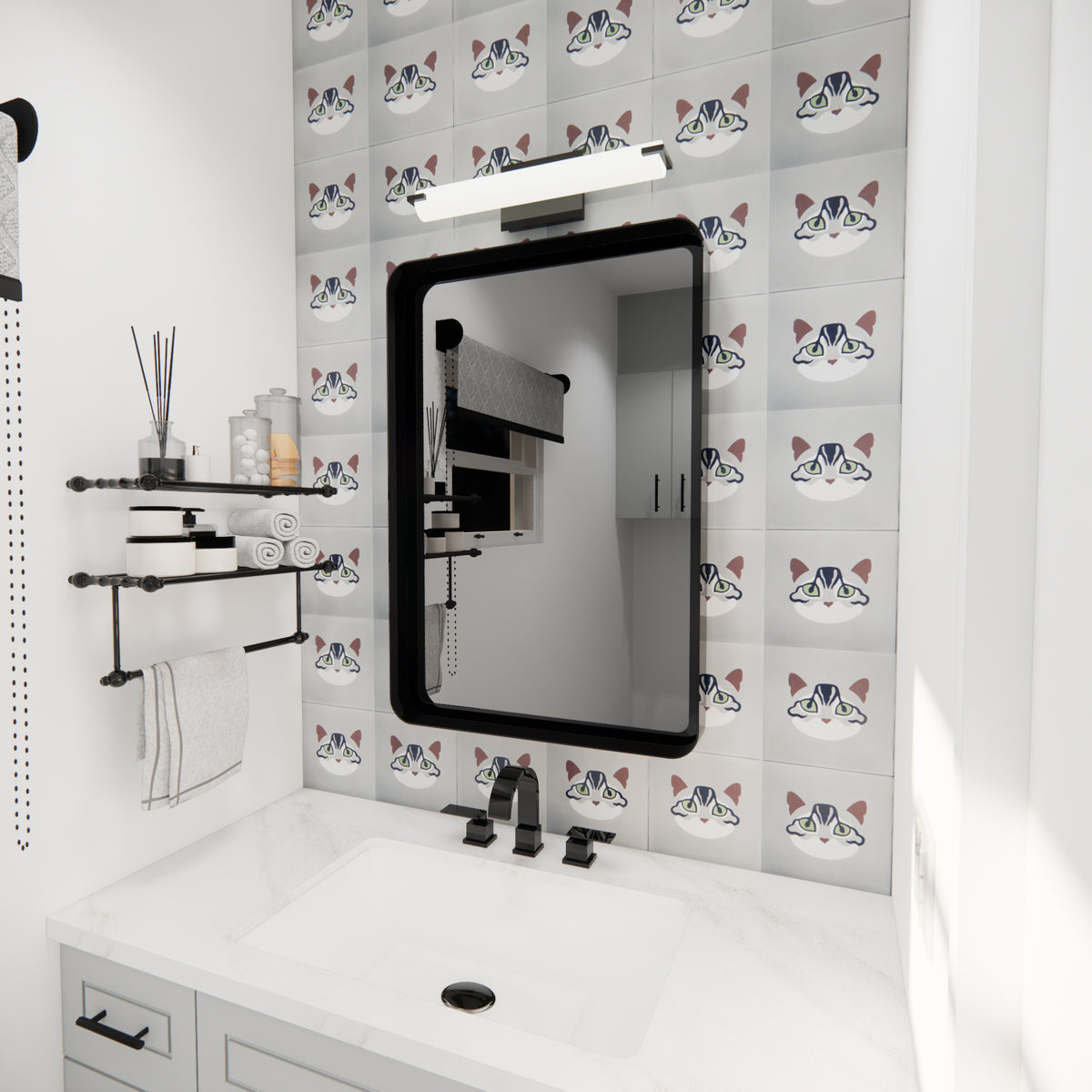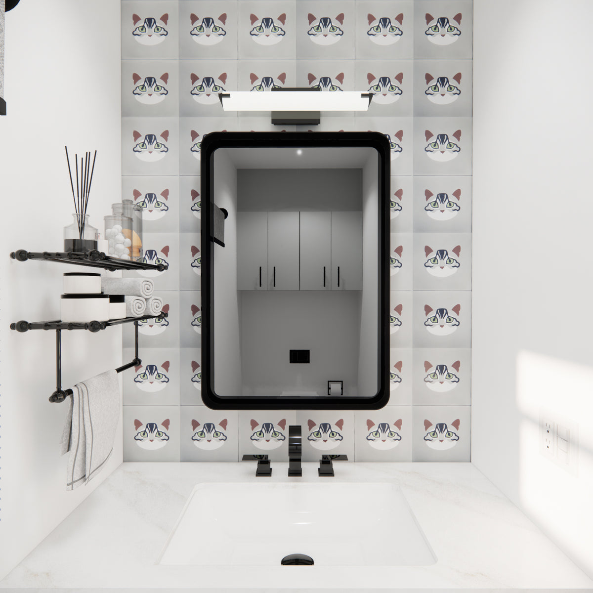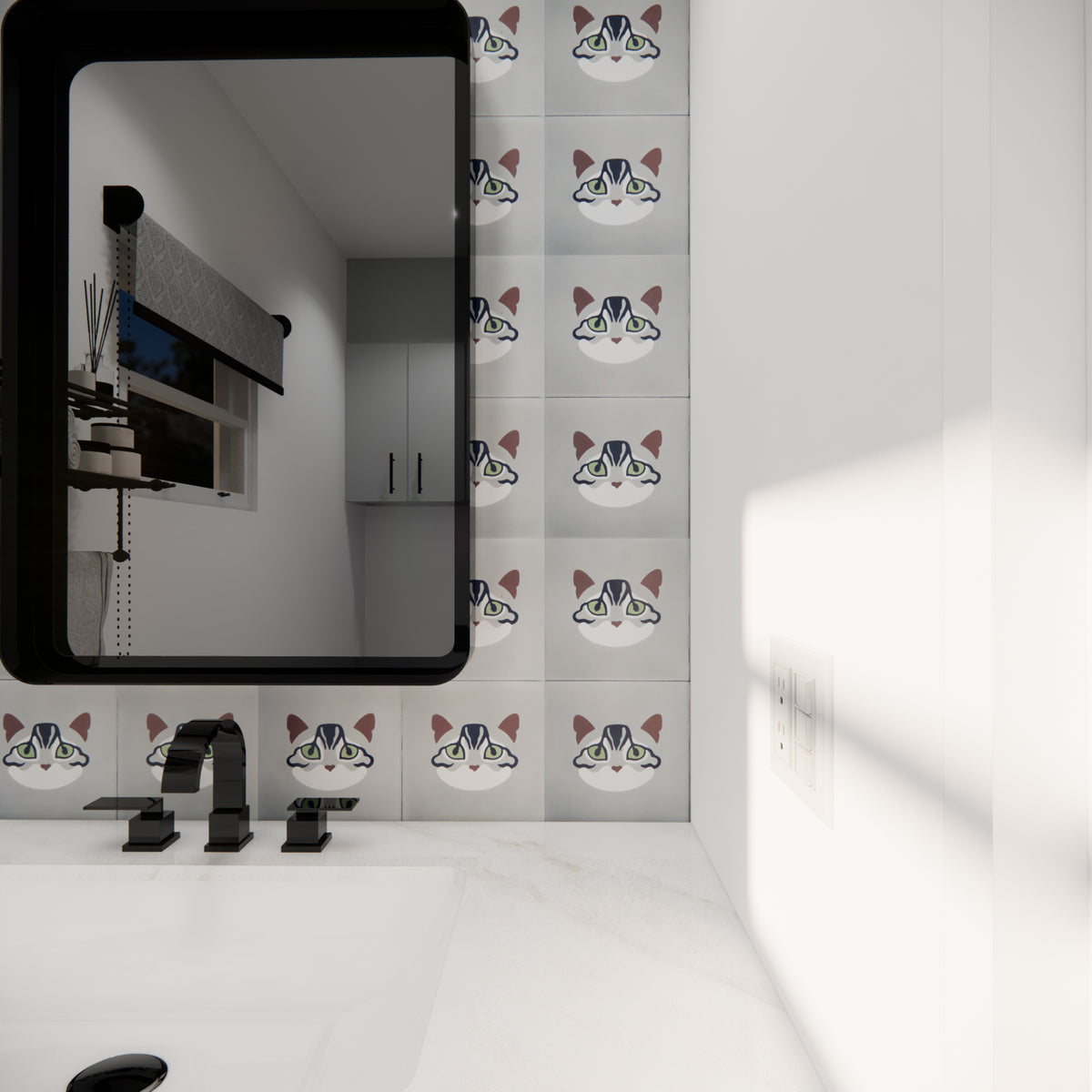 Say hello to Kiki, the mysterious tabby of the LiLi Feline Collection. With her striking green eyes and intricate stripes, Kiki adds an air of quiet sophistication that purrs with playful charm in any space. Handcrafted with premium materials, this cement tile is 8x8 in size and perfect for walls and floors, indoors or outdoors.
