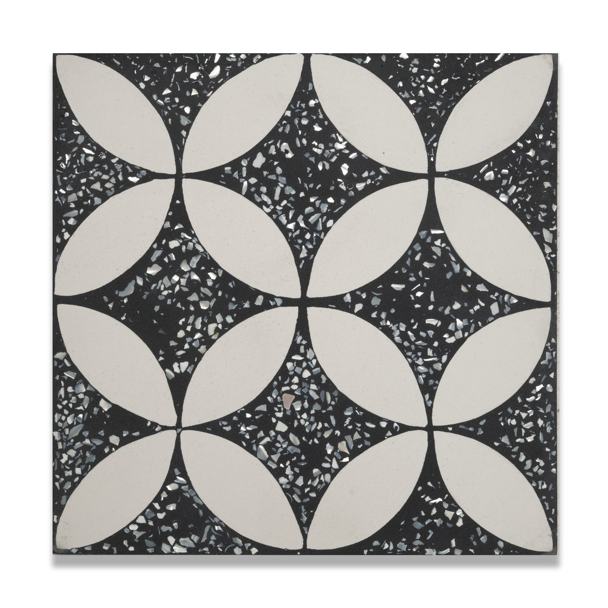 The Marta Mother of Pearl Terrazzo Cement Tile adds a glittering touch to our classic Marta design, featuring shimmering pieces of mother of pearl embedded in premium cement. Perfect for walls, floors, or backsplashes, this 8” x 8” tile combines subtle charm with a hint of sparkle, elevating any space with its unique, eye-catching beauty. The Marta Tile offers both modern sophistication and lasting craftsmanship, making it a standout addition to your home.