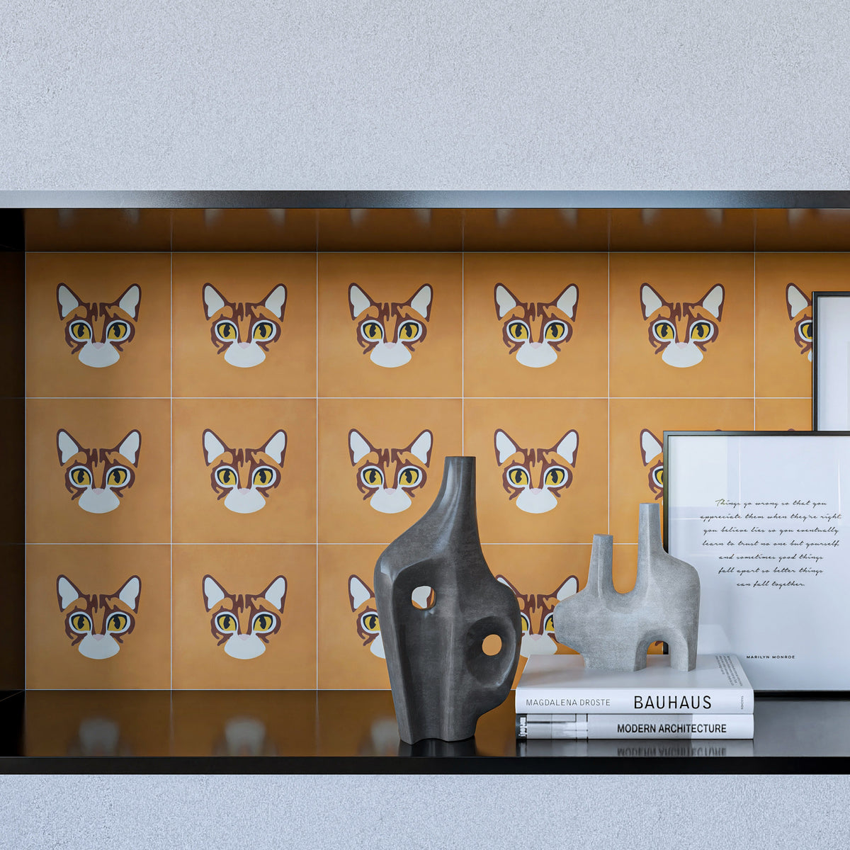 Meet Penny, the curious calico of the LiLi Feline Collection. Her wide, amber eyes gleam with endless wonder, ready to pounce into your heart. Penny brings a touch of feline mischief to any corner she calls home. Handcrafted and sized at 8x8, this cement tile is built for durability and versatility and is suitable for both floor & wall installations.