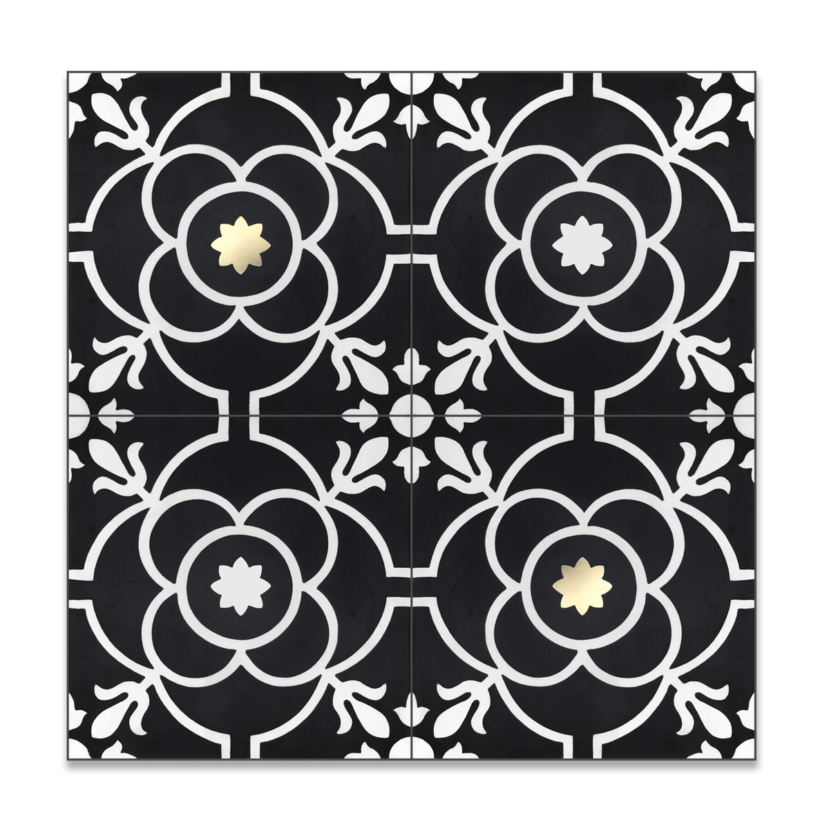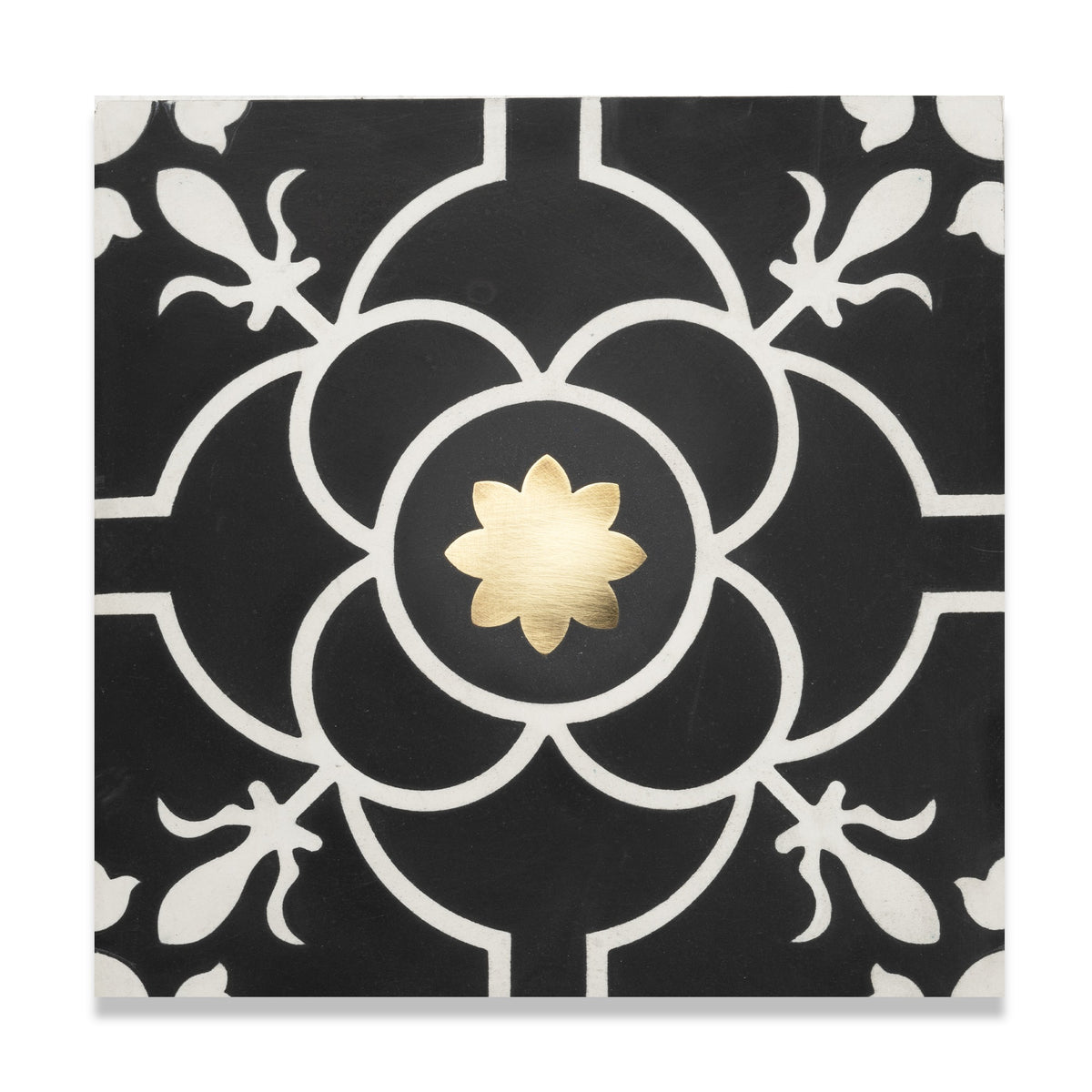 A sparkling twist on the classic Versailles design, the Versailles Elite Tile features a luxurious floral brass center that adds a touch of gold to any space. Inspired by the grand Palace of Versailles, this 8” x 8” tile is handcrafted from premium cement. Its royal beauty makes it perfect for elevating walls, floors, or backsplashes. Now available in a non-brass version as well.