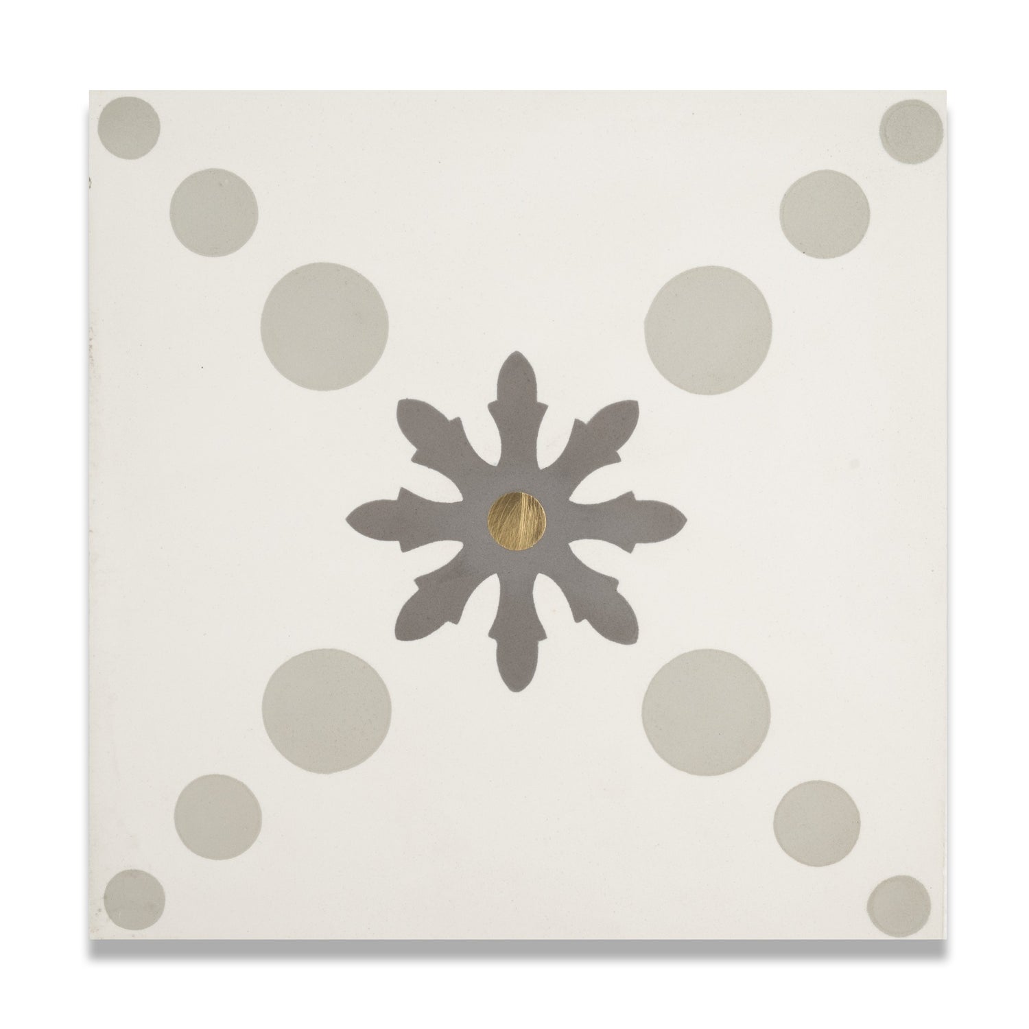Exuding timeless elegance, the Bijoux Cement Tile is crafted from premium cement and features a refined encaustic pattern with a touch of brass, adding a luxurious shimmer to any room. Traditional yet charming, this 8” x 8” tile is perfect for creating a unique, sophisticated space that combines elegance with a modern flair.