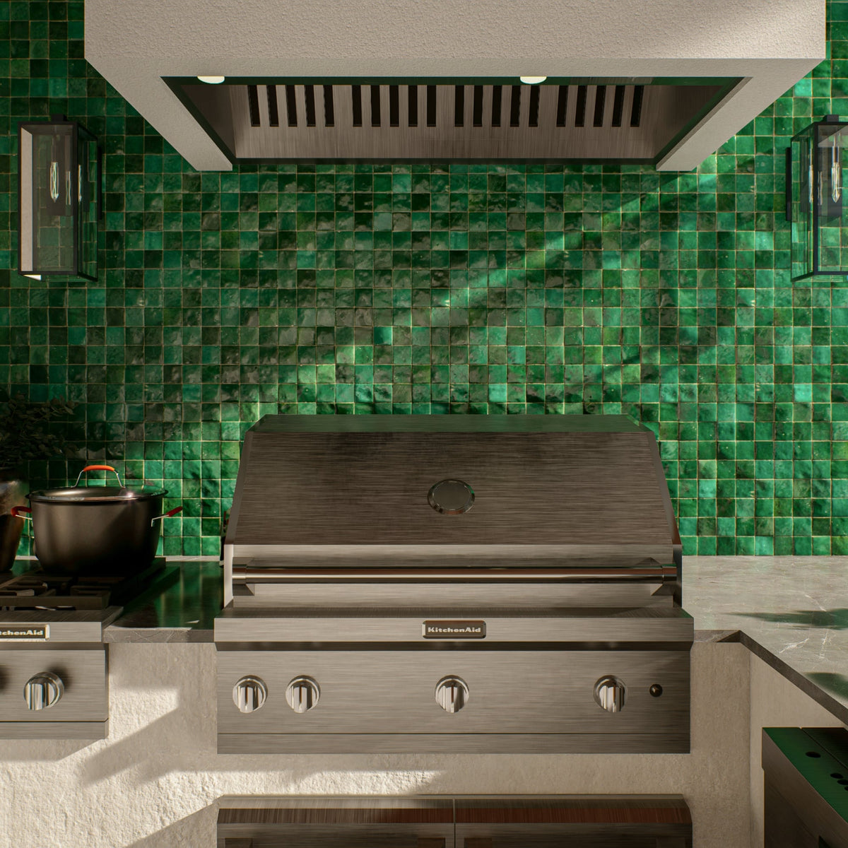 Beetle Green Zellige Tile - 2x2 Mosaic