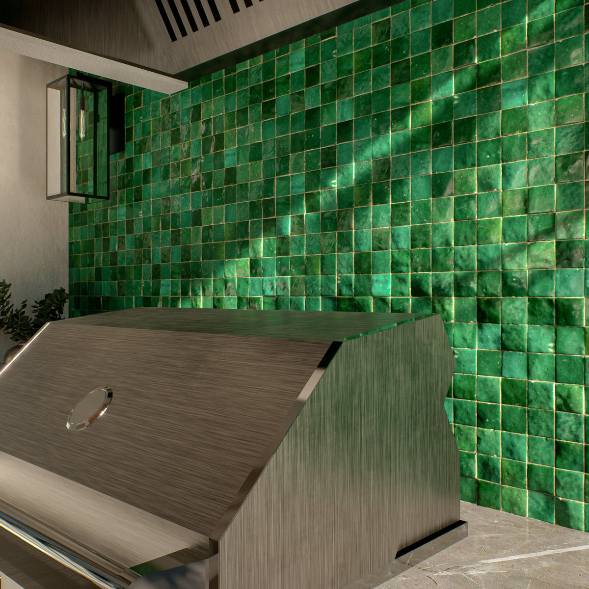 Zellige tiles are celebrated for their unique characteristics—their imperfections are not flaws but rather marks of authentic handcrafting. Each tile varies slightly in color, texture, and sheen, contributing to a look that is rich in character and natural beauty. These variations ensure no two tiles are exactly alike, offering a truly distinctive and organic aesthetic that enhances any space.