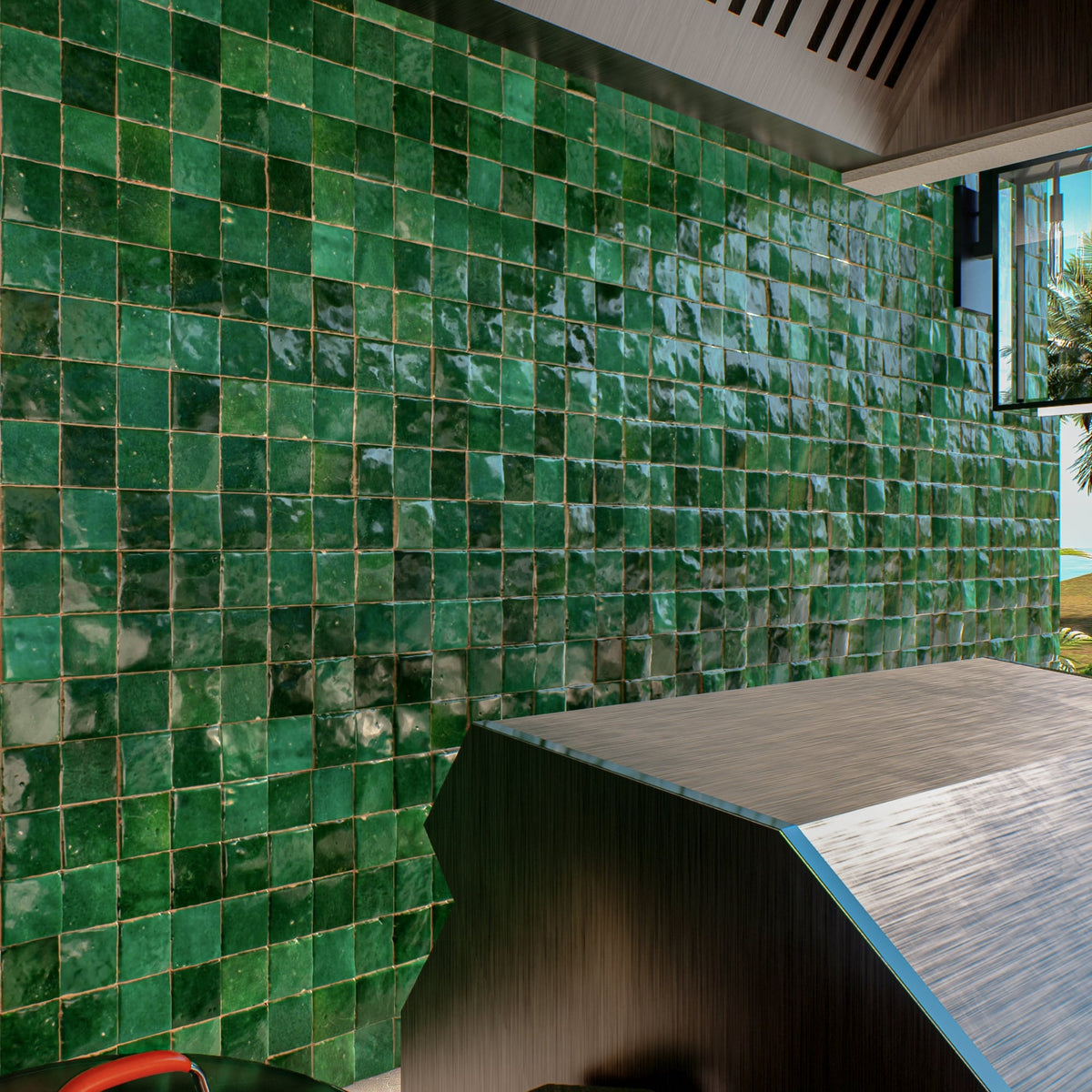 Crafted from the finest Moroccan clay, each of our Zellige tiles begins as a raw, earthy slab that is meticulously hand-molded and shaped by local artisans. This hands-on approach continues as each tile is carefully hand-glazed, infusing it with vibrant colors and a glossy sheen that reflects centuries of Moroccan tradition. The entire process, steeped in manual craftsmanship, ensures that every tile is a personal creation from the artisan's hands to your home.