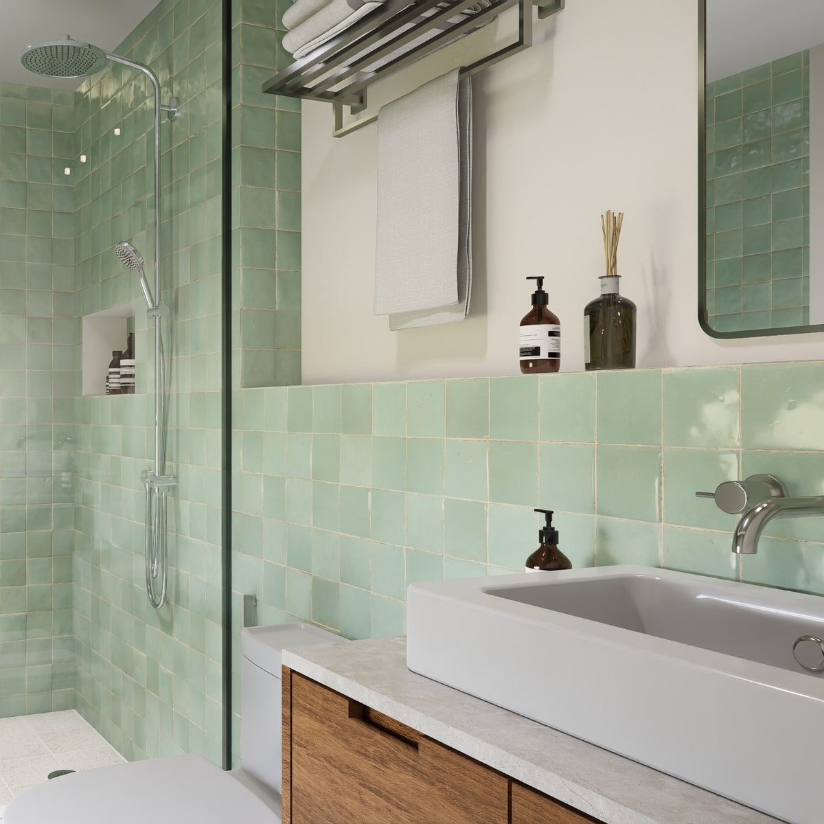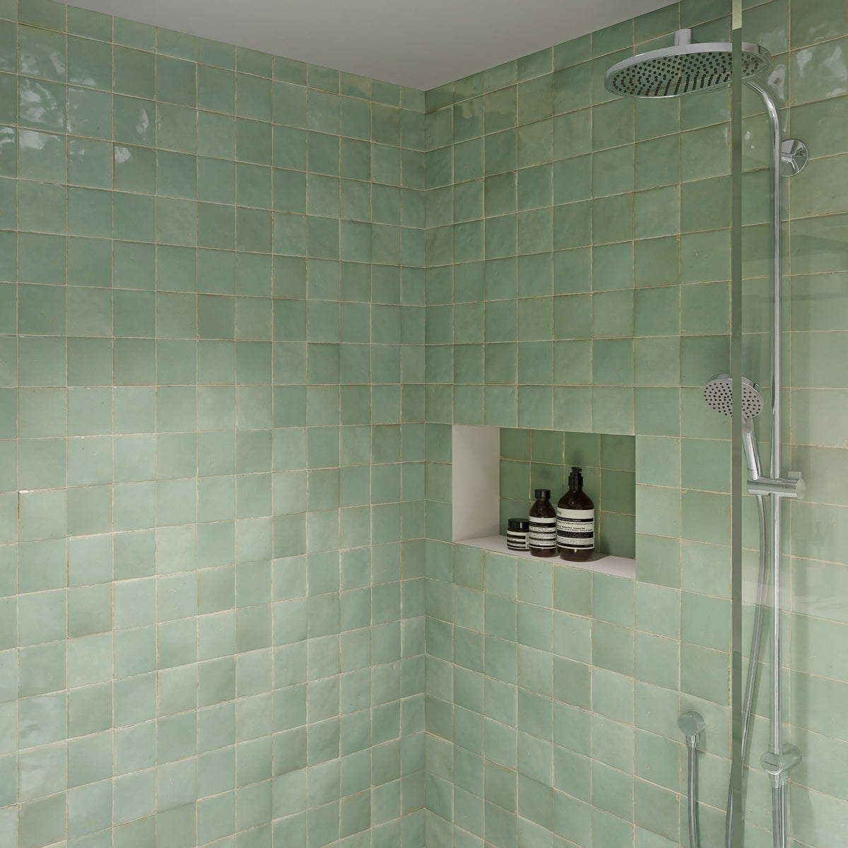 Let your home shine with the captivating beauty of Moroccan Jade Zellige Tiles in a 4x4 size. Handcrafted from natural Moroccan clay, each tile exquisitely reflects the rich and vibrant hues of sculpted jade, transforming your space with the luxurious elegance of this precious stone.