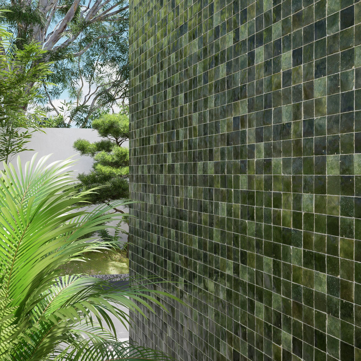 Olive Green Zellige Tile - 2x2 Mosaic