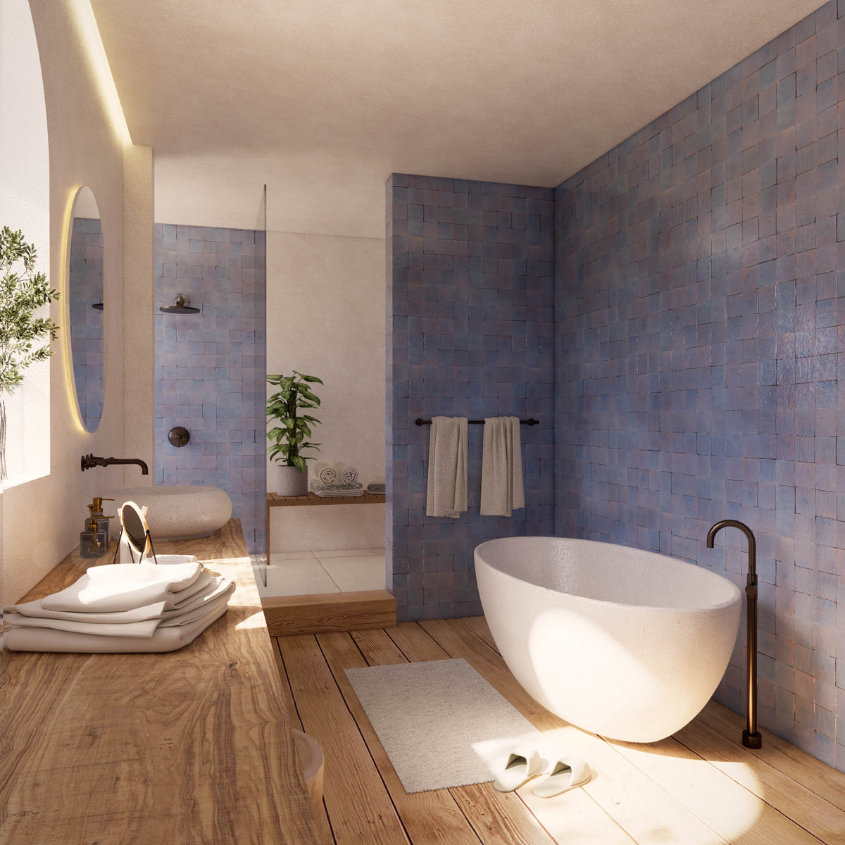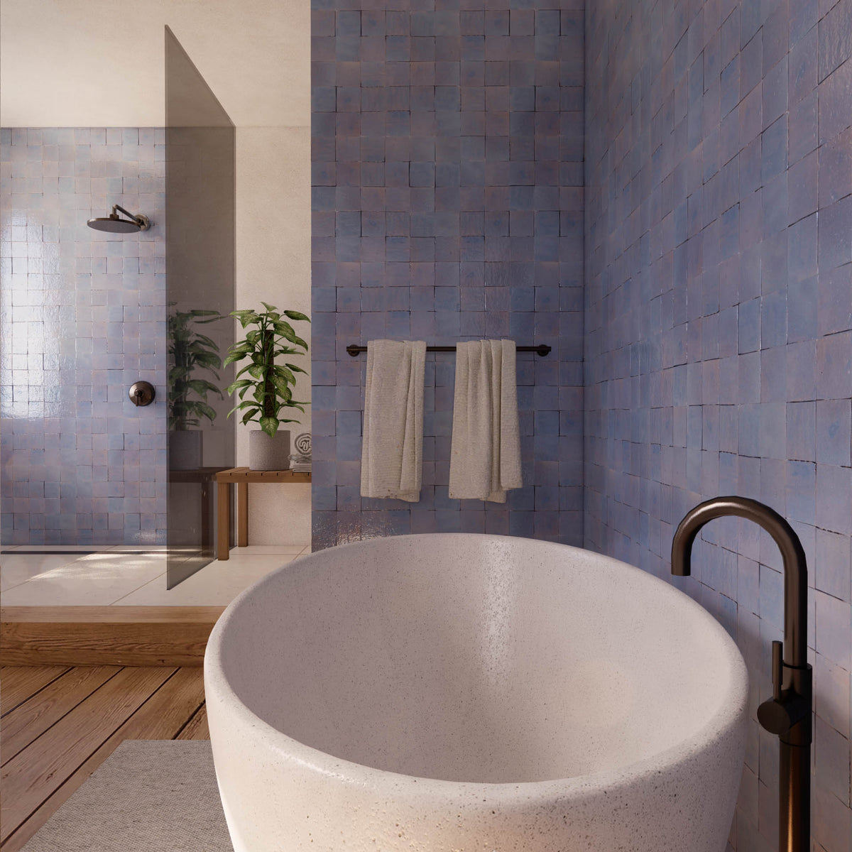 Zellige tiles are celebrated for their unique characteristics—their imperfections are not flaws but rather marks of authentic handcrafting. Each tile varies slightly in color, texture, and sheen, contributing to a look that is rich in character and natural beauty. These variations ensure no two tiles are exactly alike, offering a truly distinctive and organic aesthetic that enhances any space.