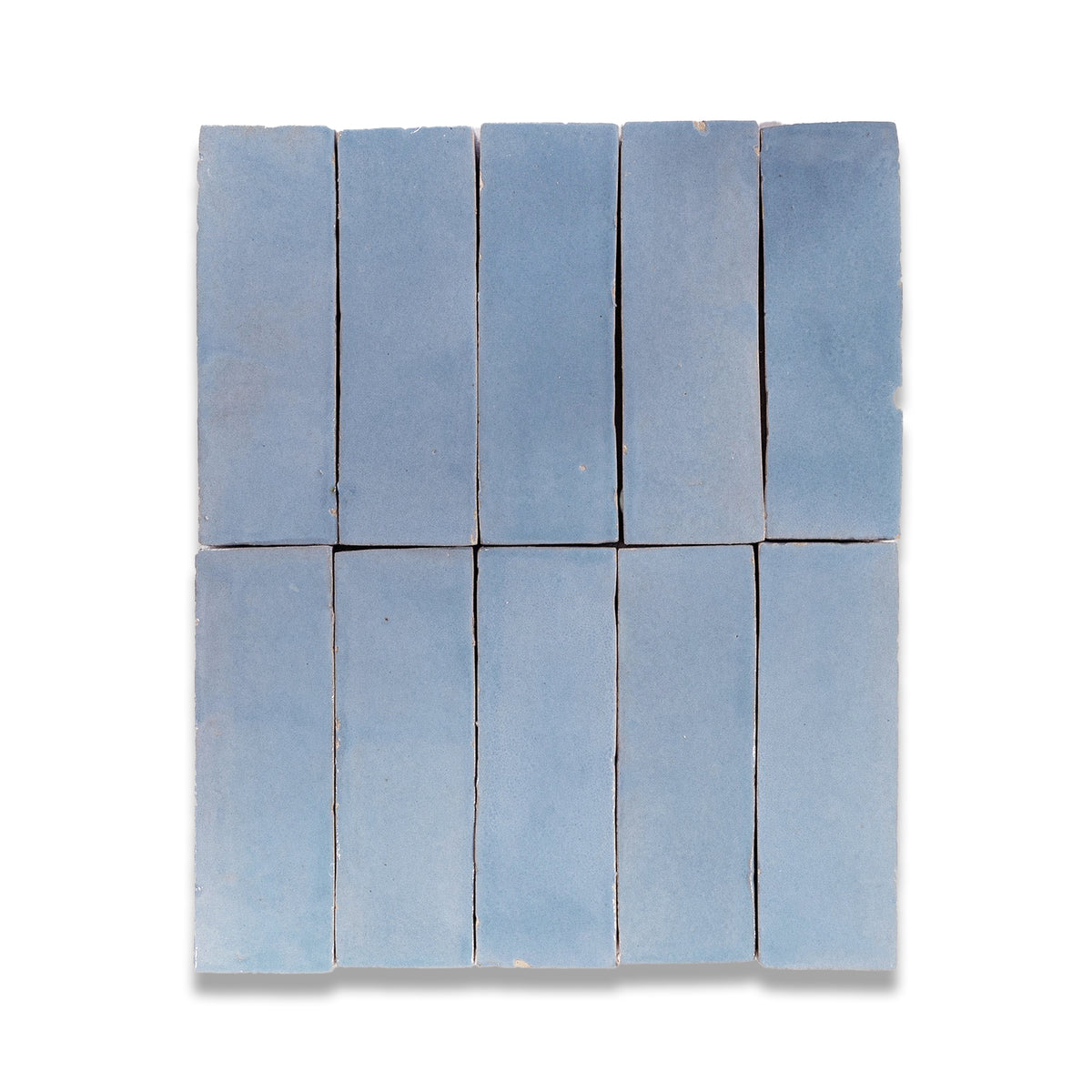 Bring a serene elegance to your home with our Wisteria Blue Zellige Tile in a 2x6 bejmat format. Handcrafted from Moroccan clay, these Zellige tiles showcase a delicate blue hue reminiscent of wisteria blossoms under a clear spring sky. Perfect for kitchens, bathrooms, or statement walls, Wisteria Blue Zellige Tiles bring a calming and timeless beauty to any room.