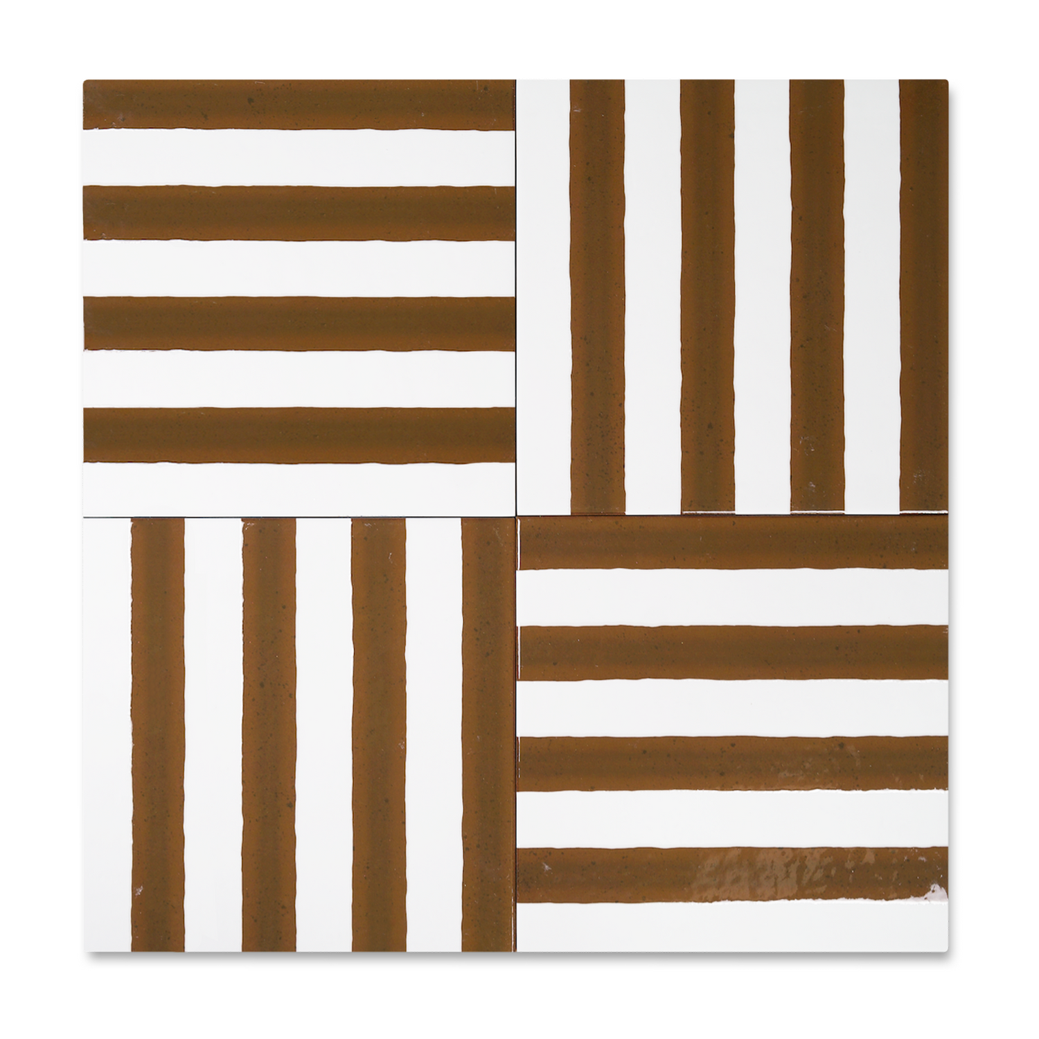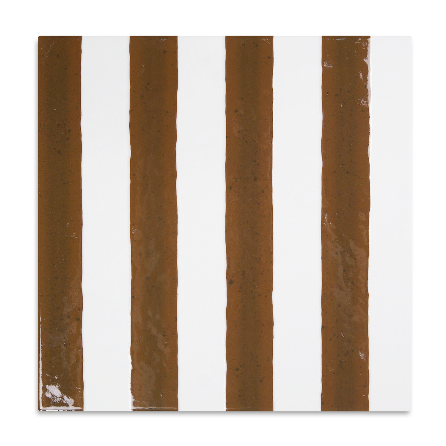 The Lines porcelain tile features vertical stripes in tones of Ochre, Graphite, Ink, and Chalk - a composition that brings rhythm, precision, and play into one impactful square. Measuring 8" x 8", this tile evokes the look of ink-drawn lines, slightly irregular in width to emphasize its hand-finished look.