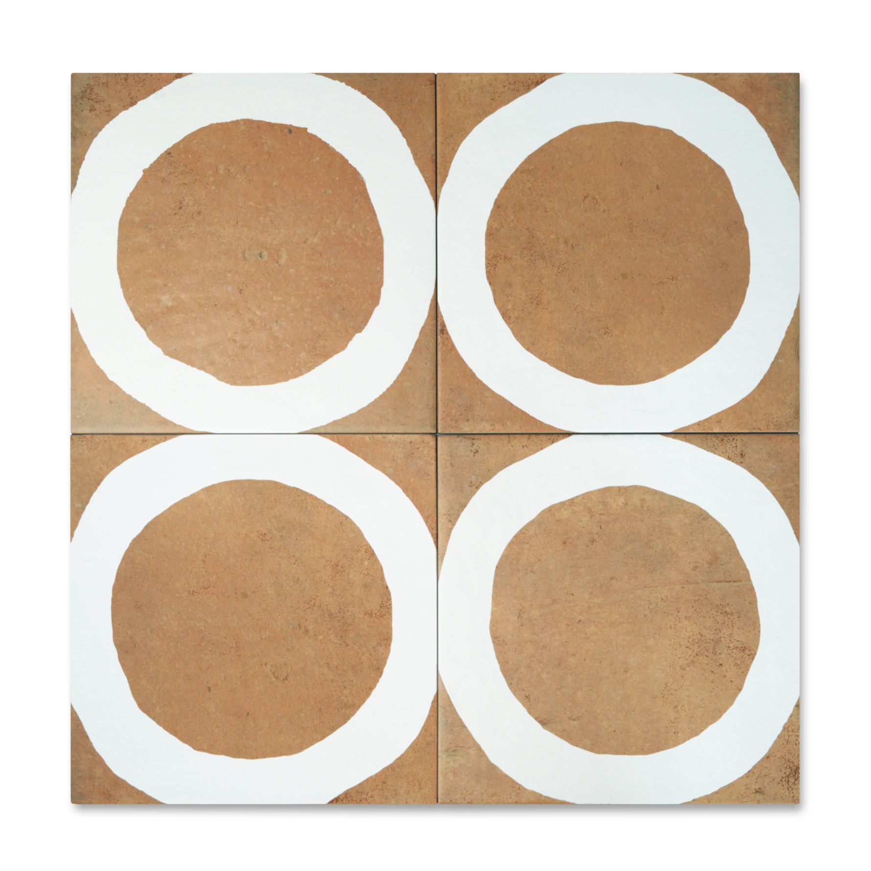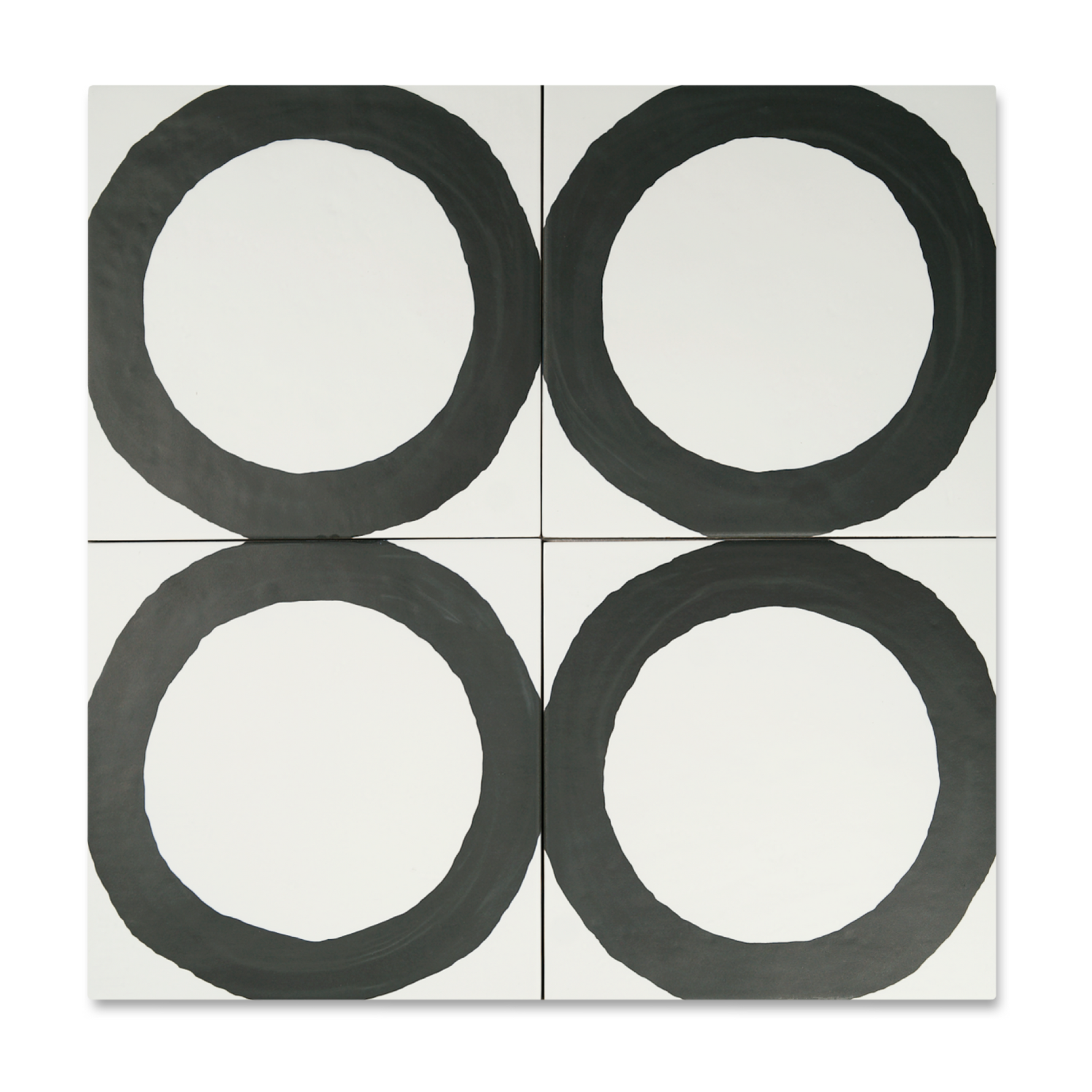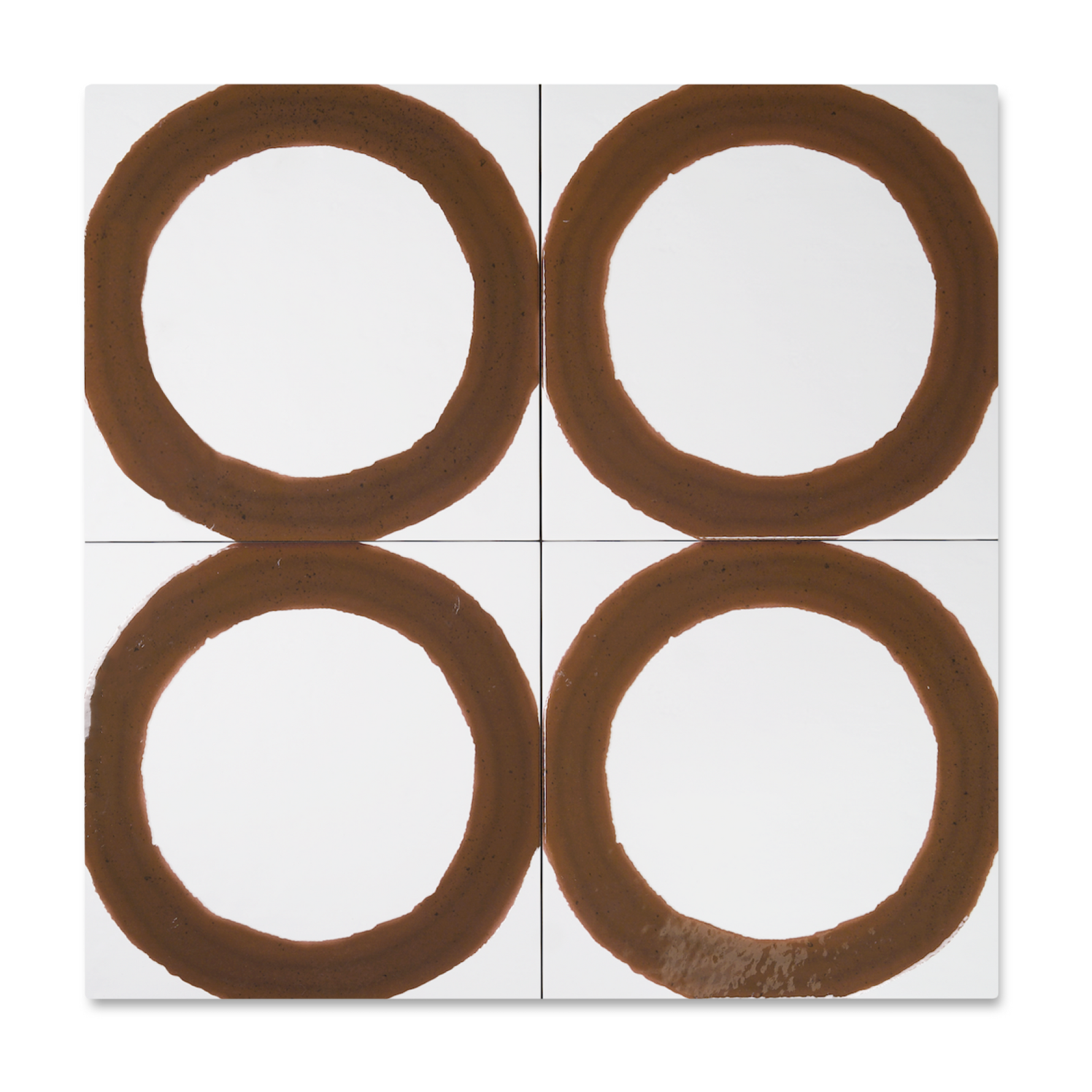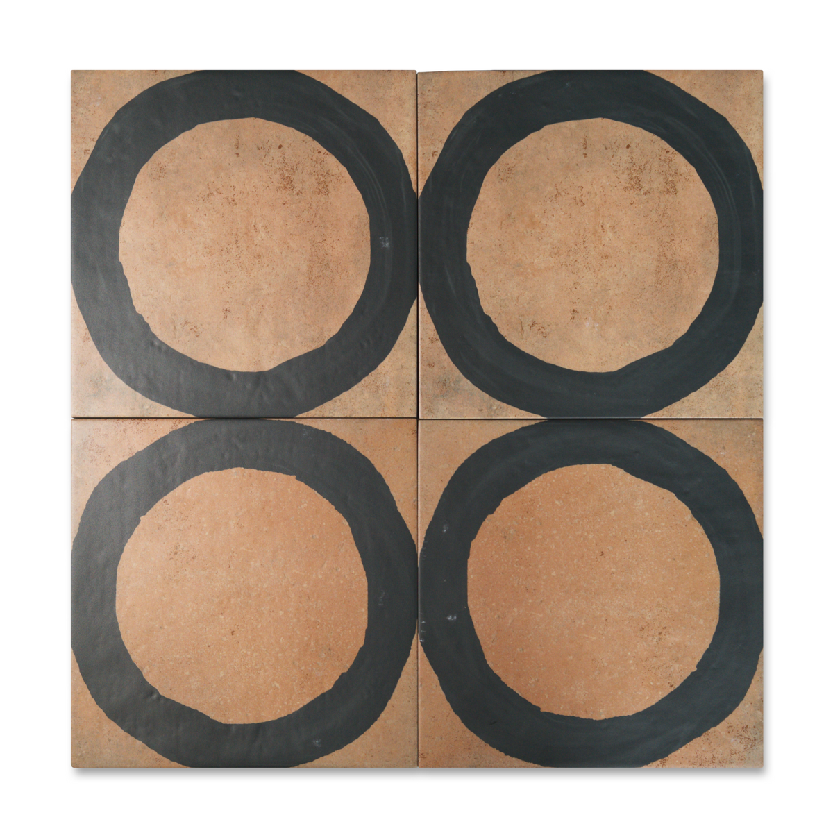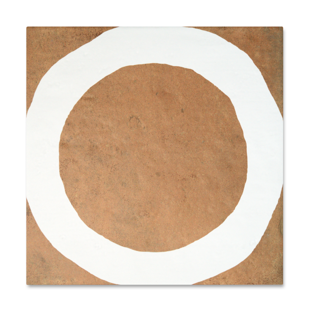 The Loop porcelain tile delivers a bold brushstroke of design with a hand-drawn circle rendered in shades of Ochre, Graphite, Ink, and Chalk. Set against a textured ceramic backdrop and sized at 8" x 8", this tile offers an artful take on geometric repetition with just enough irregularity to keep things feeling human.