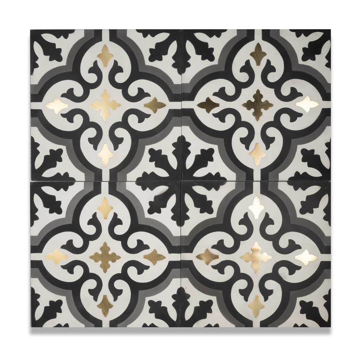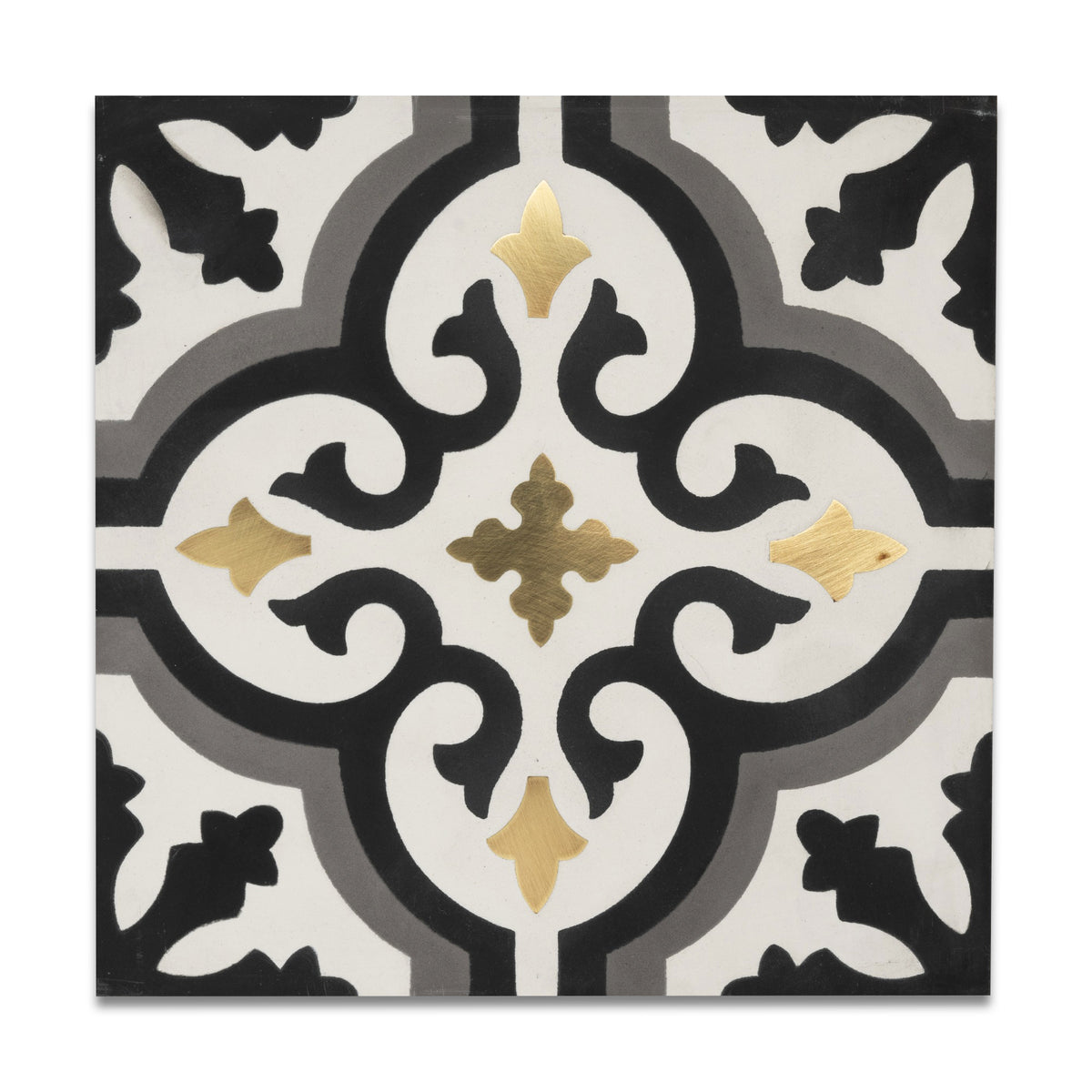 Exuding timeless elegance, the Bijoux Cement Tile is crafted from premium cement and features a refined encaustic pattern with a touch of brass, adding a luxurious shimmer to any room. Traditional yet charming, this 8” x 8” tile is perfect for creating a unique, sophisticated space that combines elegance with a modern flair.