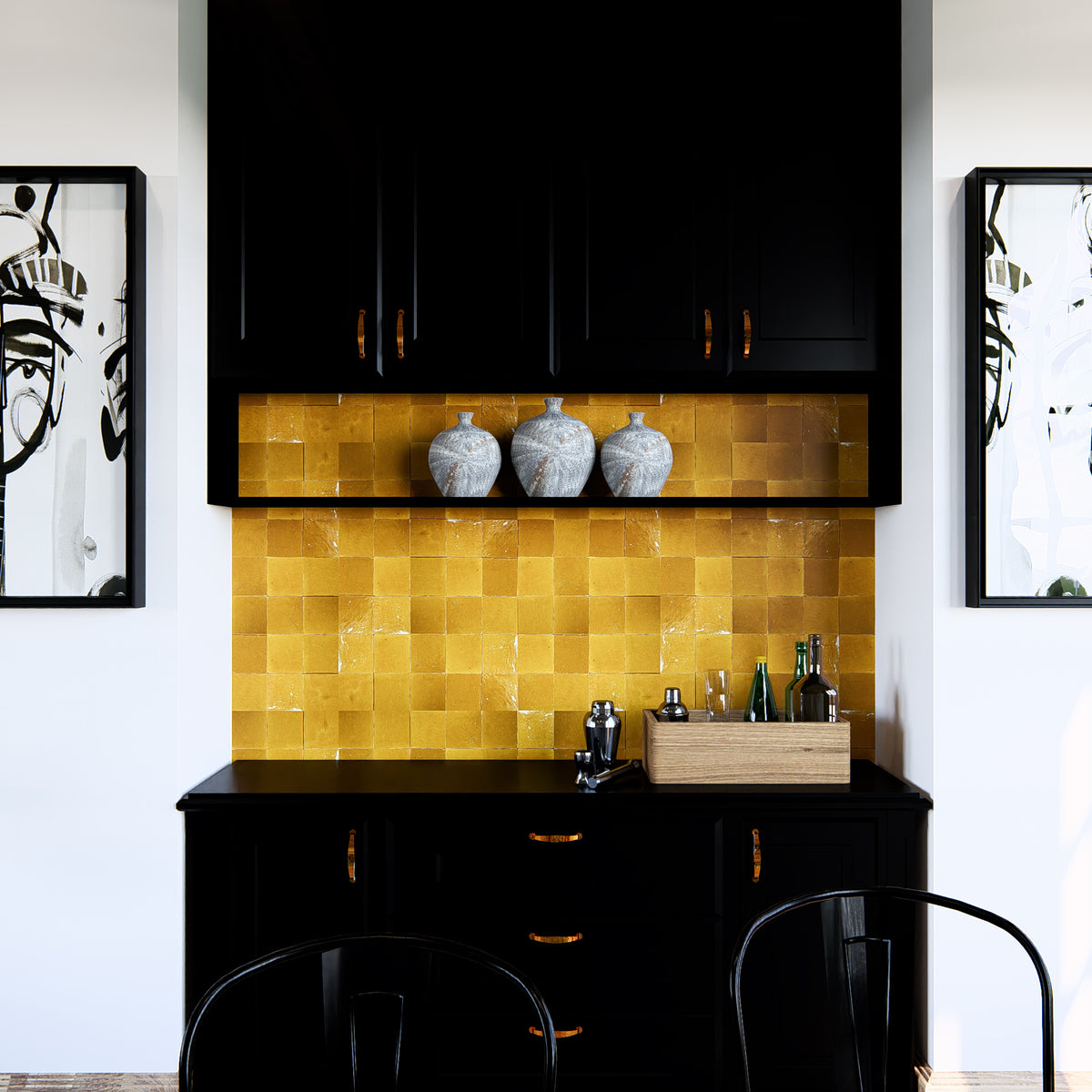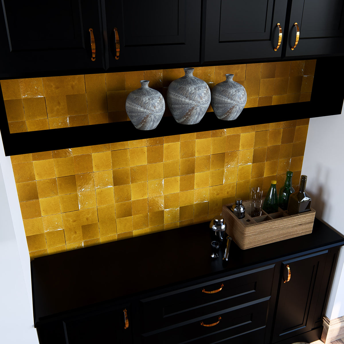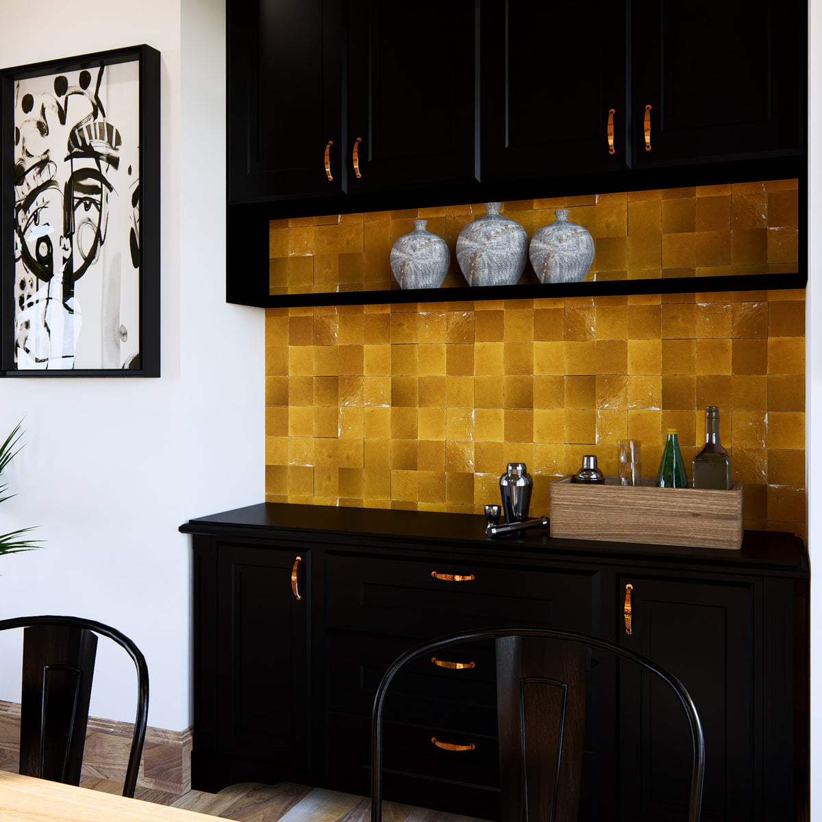 Bring the warmth of the desert into your home with the Kasbah Camel Zellige Tile in a 4x4 size. Handcrafted from natural Moroccan clay, each tile mirrors the deep golden tones of a camel's fur coat as it basks in the Saharan sun.