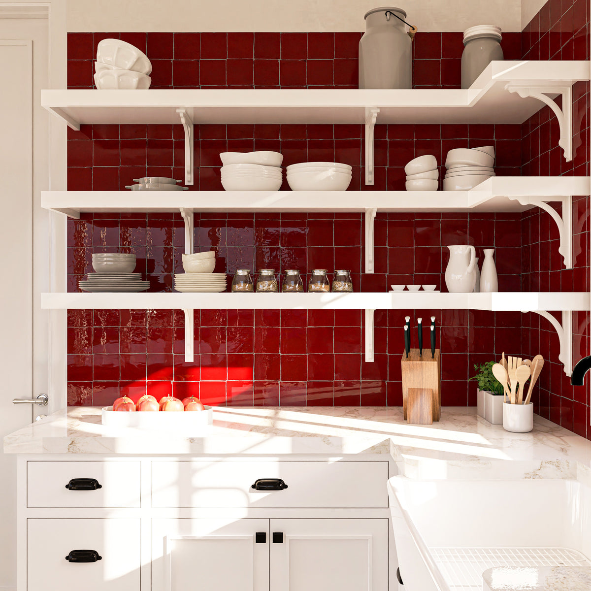 Maintenance: Zellige tiles are low maintenance. Clean tiles with mild soap and water.