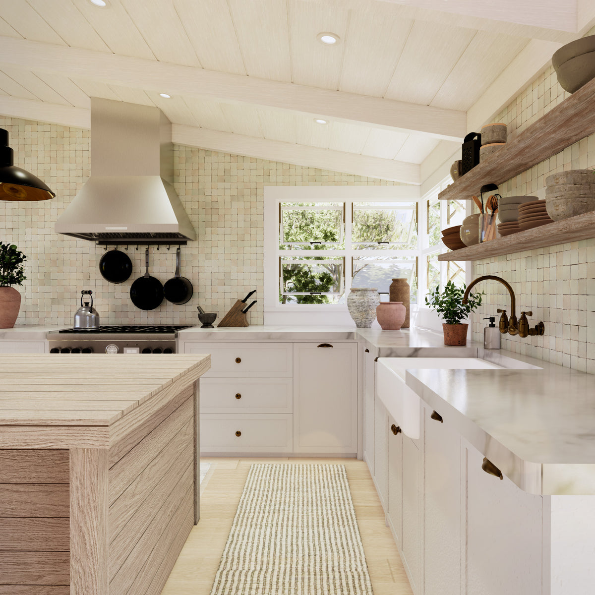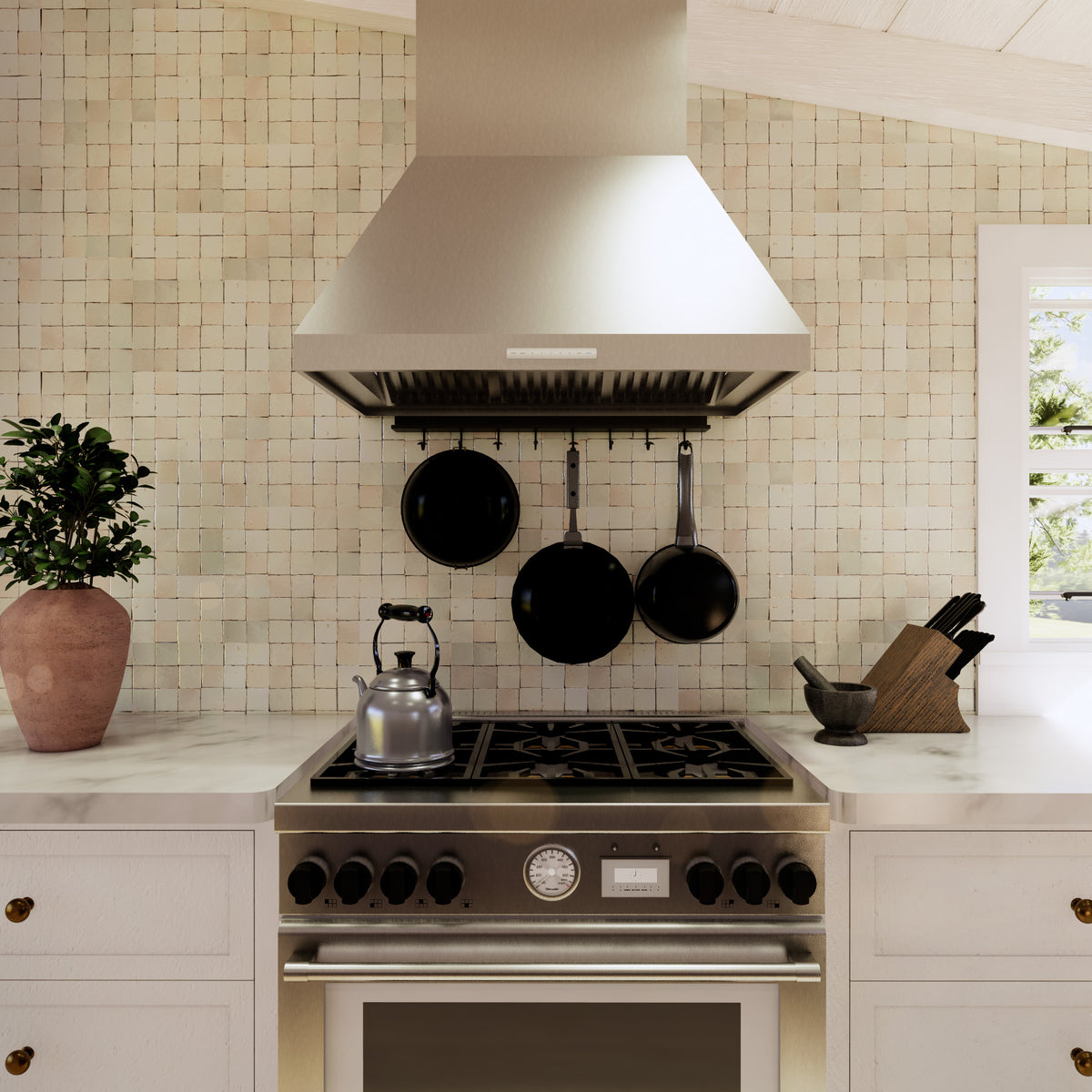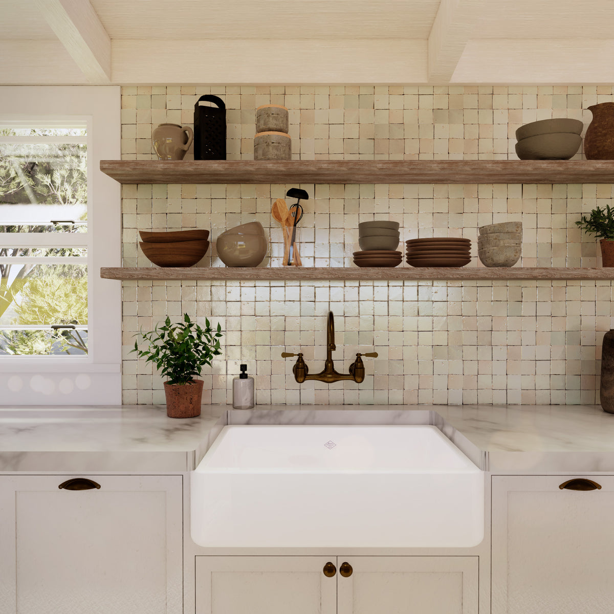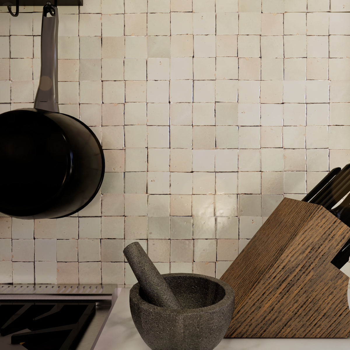 Maintenance: Zellige tiles are low maintenance. Clean tiles with mild soap and water.