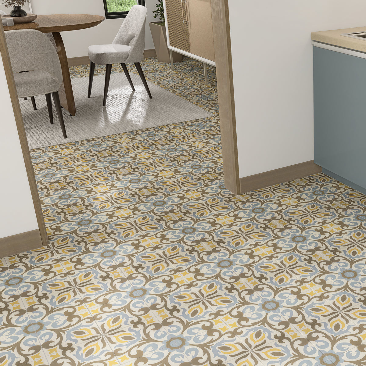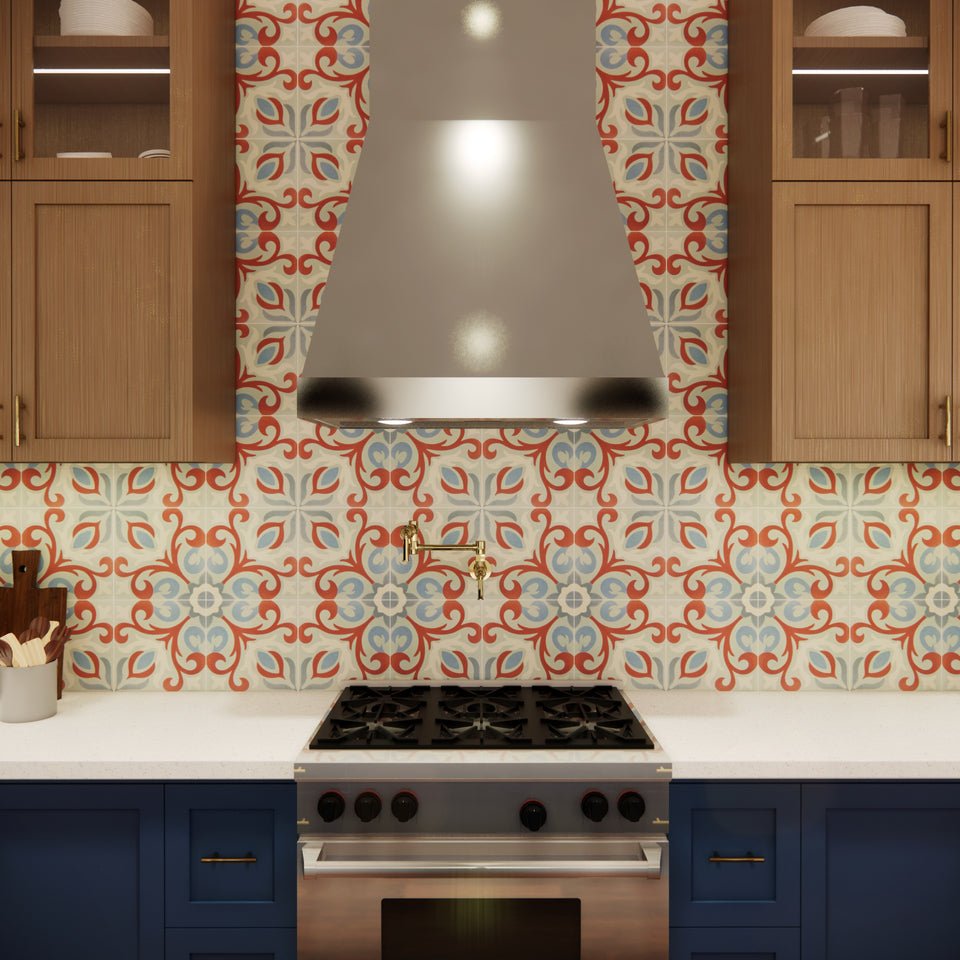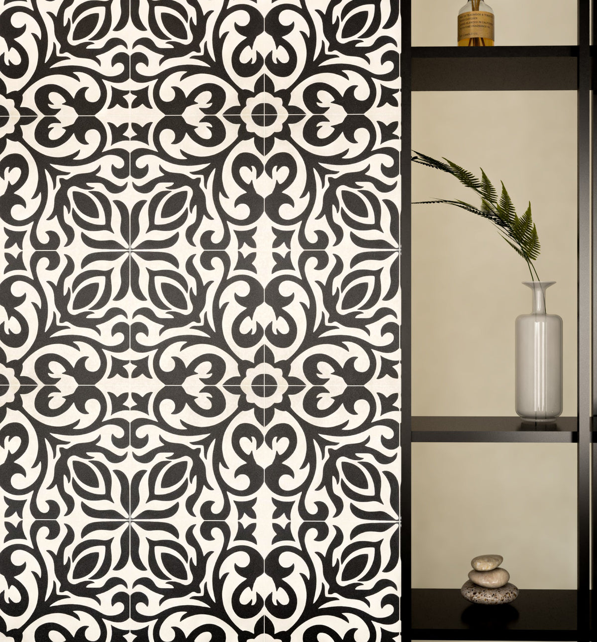 Delicate and beautifully intricate, the Siena Cement Tile brings floral symmetry to traditional spaces. Crafted from premium cement, this 8” x 8” tile offers both graceful design and durable performance, making it ideal for walls, floors, or backsplashes. The Siena Tile is a timeless addition that infuses any room with elegance and horticultural charm.
