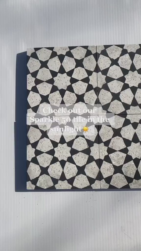 The Spark 50 Mother of Pearl Terrazzo Tile offers a glittery take on a traditional pattern, perfect for adding much-needed sparkle to any dull space. Real pieces of Mother of Pearl are embedded into premium cement, creating a dazzling and one-of-a-kind shimmer. The 6” x 6” Spark Tile combines elegance with durability, making it ideal for walls, floors, or backsplashes in need of a radiant upgrade.