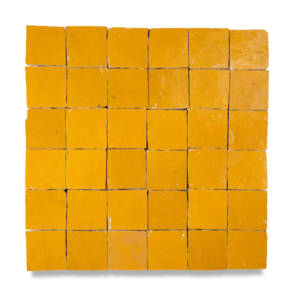 Spice up your space with the vibrant color of the Turmeric Zellige Tiles in a 2x2 mosaic. These tiles, handcrafted from natural Moroccan clay and mounted on a 12x12 sheet for easy installation, exhibit warm, golden tones of ground turmeric to brighten up any space.