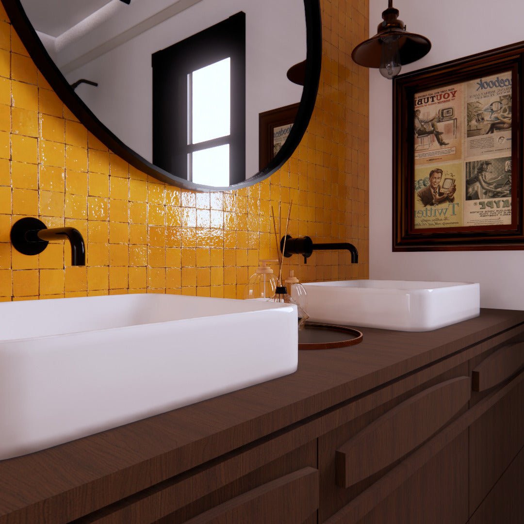 Maintenance: Zellige tiles are low maintenance. Clean tiles with mild soap and water.