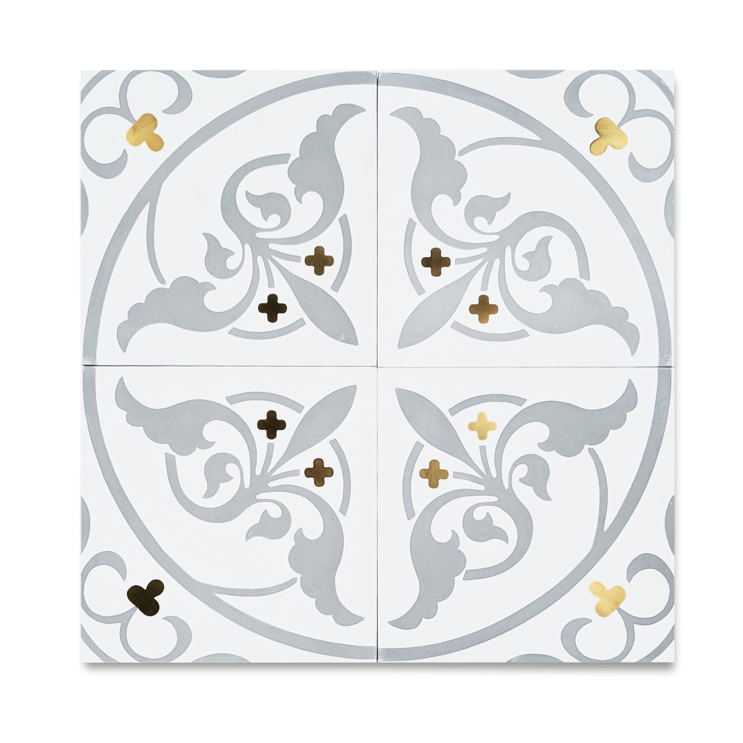 The Dore Cement Tile offers a delicate, patterned design with an elegant brass touch. Crafted from premium cement, this tile is perfect for traditional spaces seeking a refined yet understated look. Available with or without brass inserts, the Dore Tile brings a soft elegance to walls, floors, or backsplashes while providing long-lasting durability.