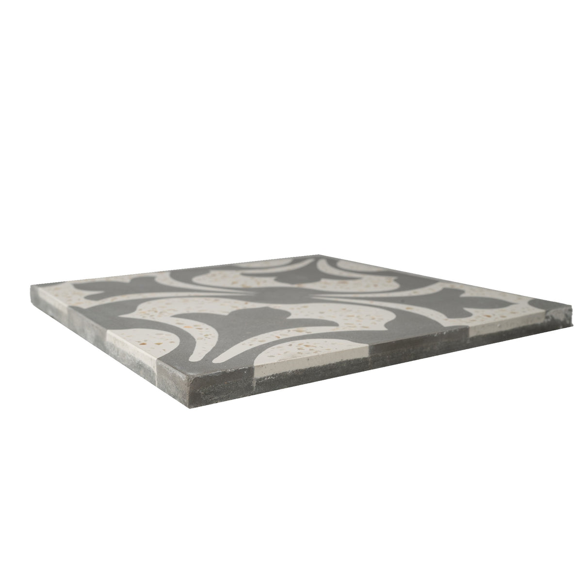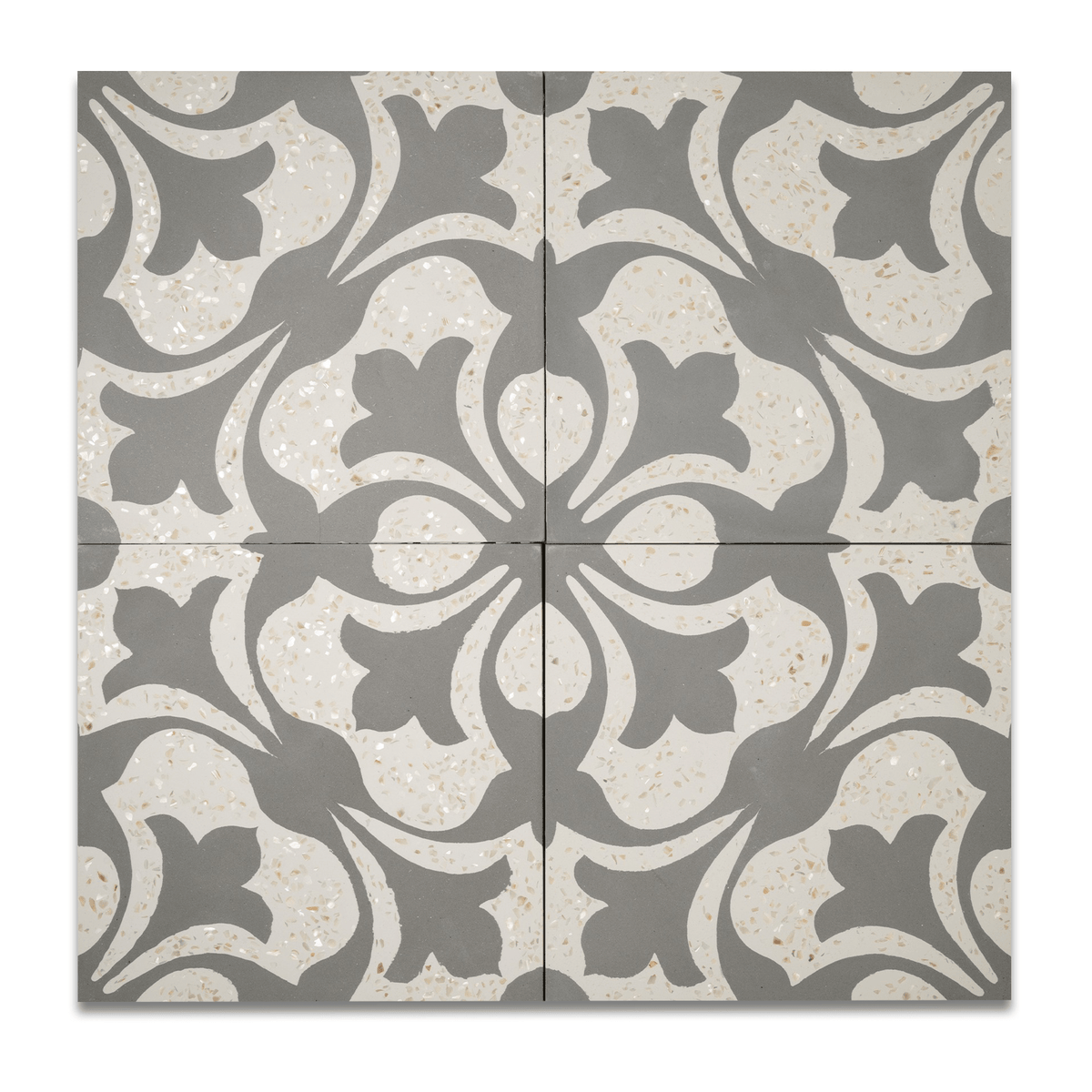 Elevate your space with the Abigale 50 Terrazzo Tile, a captivating twist on our classic Abigale pattern. This handmade cement tile features a speckled gray base adorned with shimmering white mother-of-pearl accents, creating a truly unique and elegant aesthetic. Ideal for well-lit areas, the Abigale 50 truly shines, making it perfect for backsplashes, feature walls, or flooring in various settings.