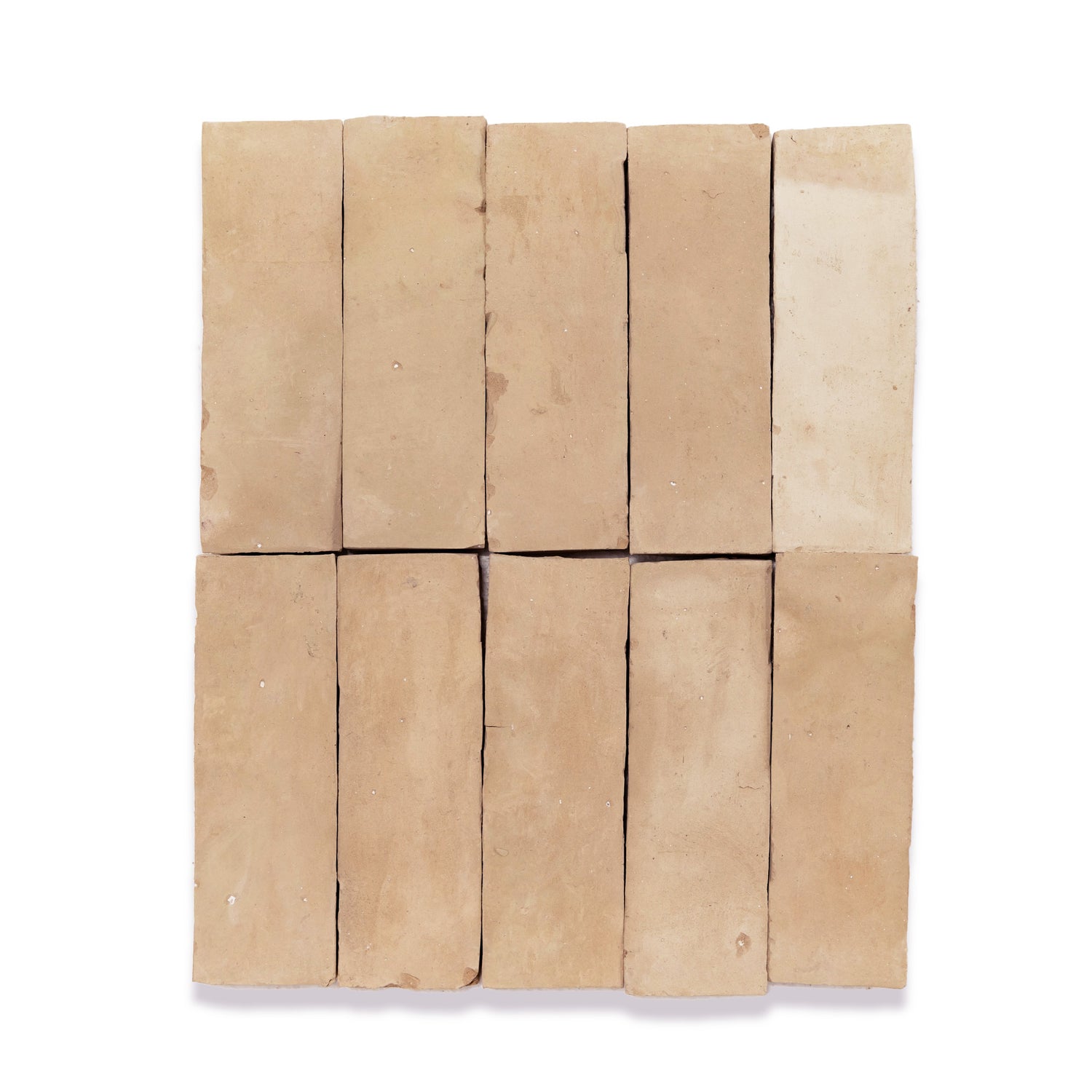 Our Fossil 2x6 Bejmat tiles exude natural elegance with their elongated form and warm, earthy tones inspired by weathered stone and ancient landscapes. Unlike the rest of our Zellige Collection, these tiles are unglazed. Handcrafted with care, each Zellige tile features subtle variations in texture and hue, creating a dynamic surface full of organic charm. Perfect for rustic backsplashes, serene bathroom accents, or sophisticated feature walls, Fossil Bejmat tiles bring a timeless and grounding beauty to any space.