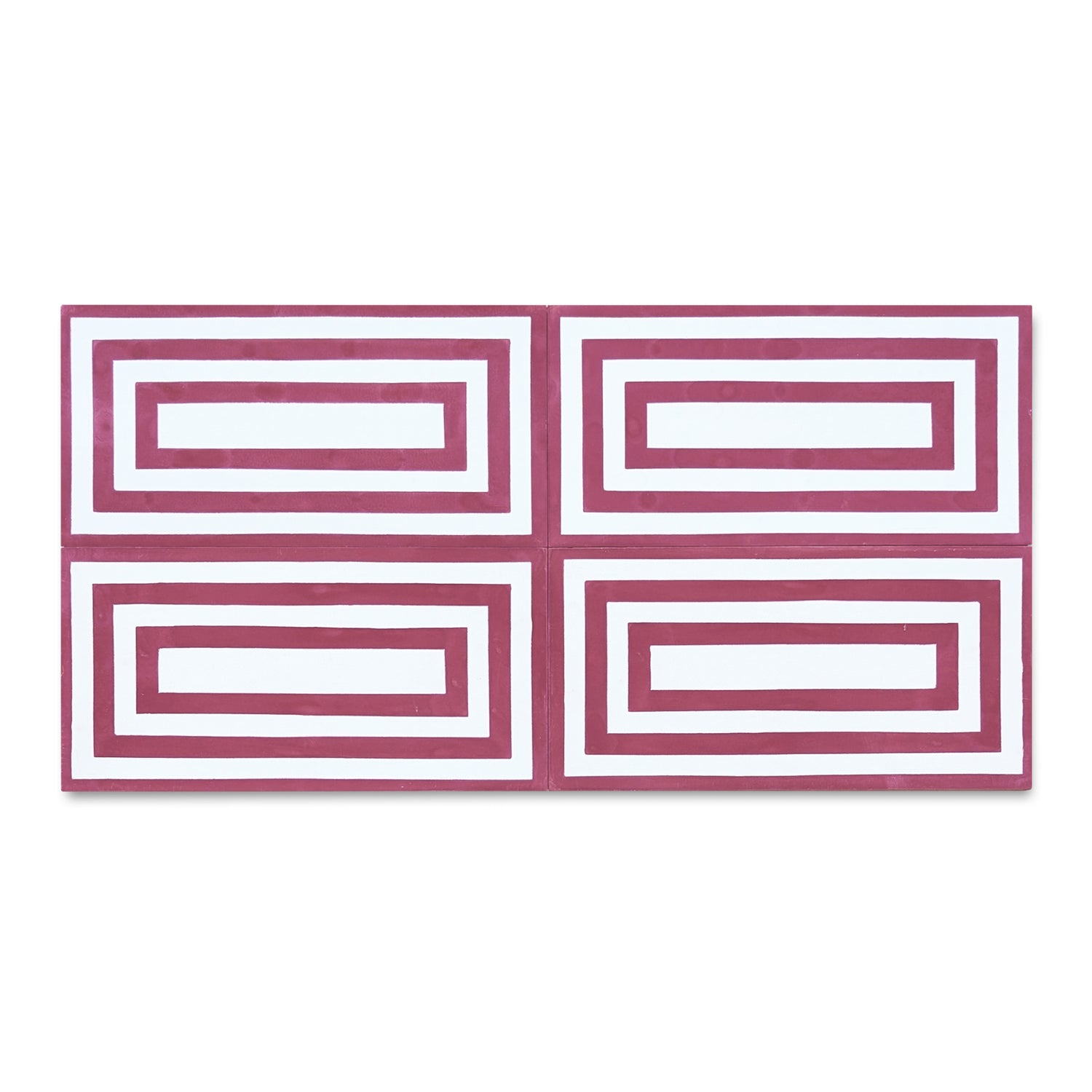 Frame tiles are premium cement tiles that explore balance through repetition, with parallel lines forming a frame-within-a-frame composition that creates a clean, architectural rhythm across the surface. Each variation shifts the atmosphere through color:Â Frames 4 pairs rich burgundy with soft white for sharp clarity, Frames 5 blends sky blue, leafy green, and terracotta orange in a playful, refreshing palette, Frames 6 deepens the same blue and green tones around terracotta for a more grounded, organic harmony, while Frames 7 sharpens the rhythm with bold cobalt blue, crisp white, and black for a striking, modern edge. Together, the series demonstrates how geometry stays constant while color transforms the mood.