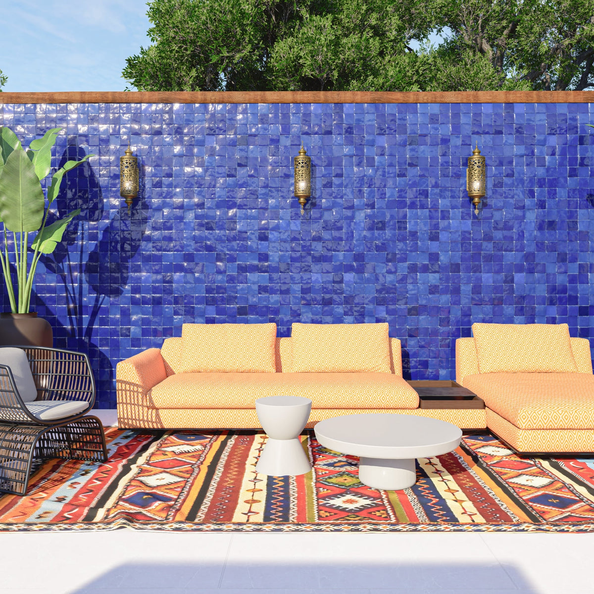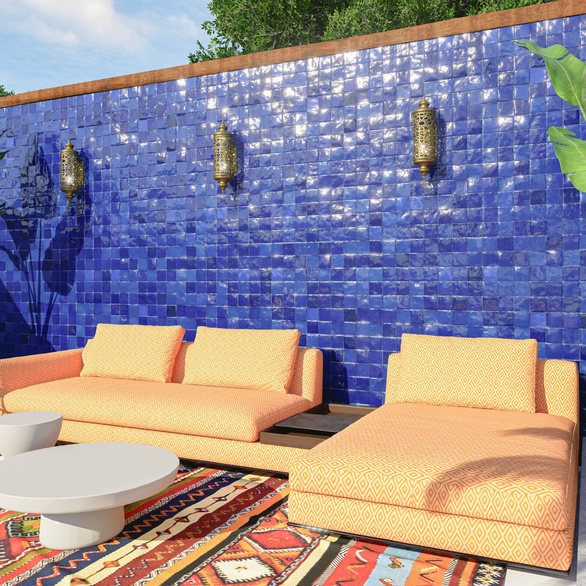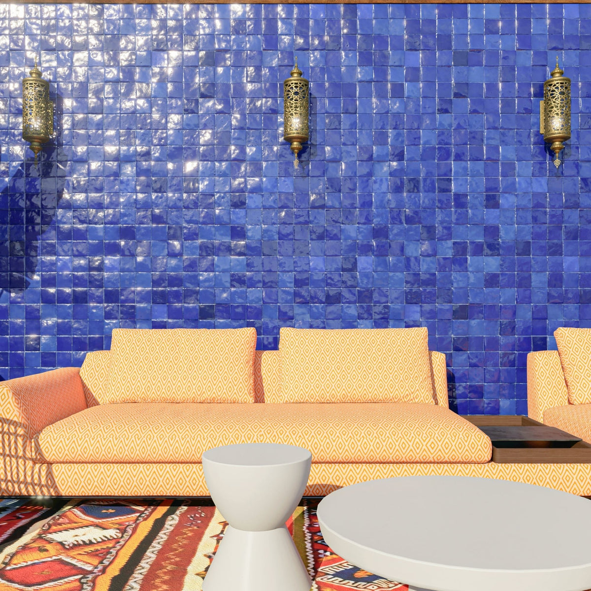 Maintenance: Zellige tiles are low maintenance. Clean tiles with mild soap and water.