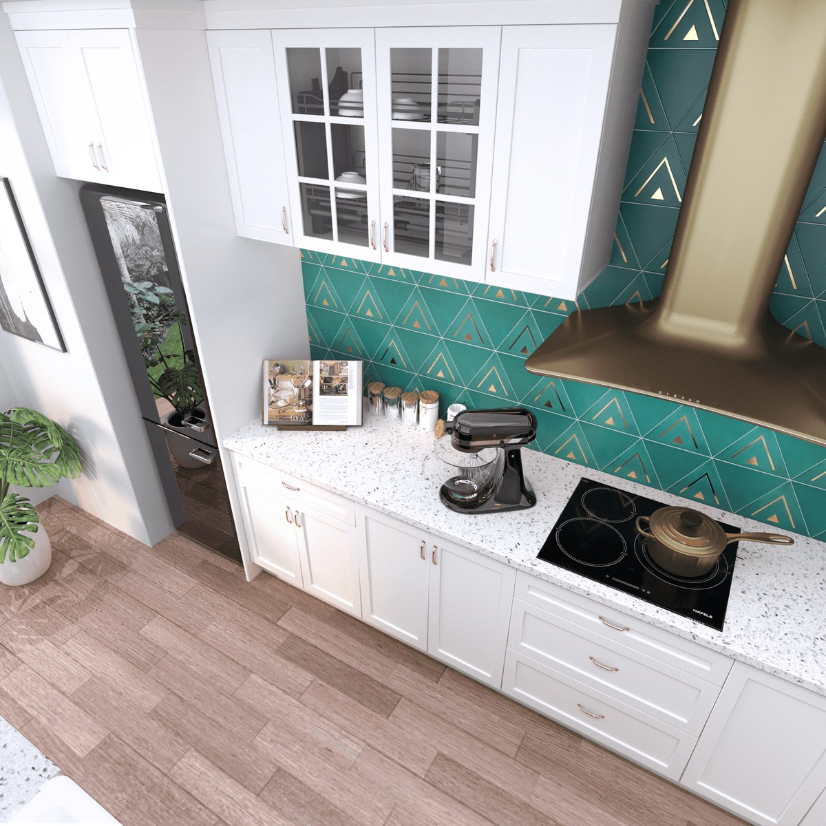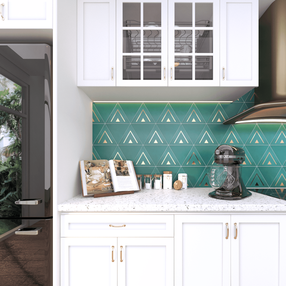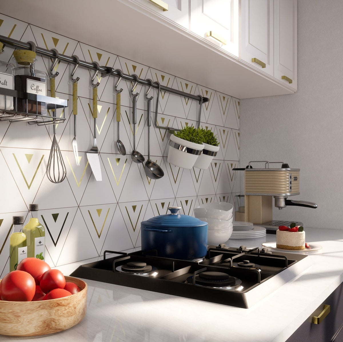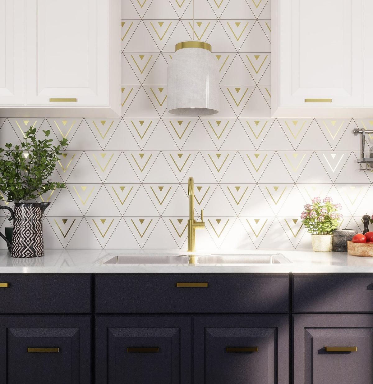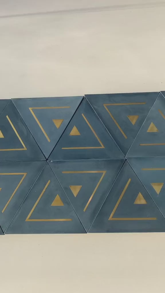 The Cairo Triangle Tile brings a sleek and modern design to any project. With its bold triangular shape and refined brass detailing, this cement tile adds a touch of luxury and sophistication to walls, floors, or decorative accents. Perfect for creating eye-catching patterns or statement areas, the Cairo Tile is a versatile option that elevates both residential and commercial interiors with its geometric appeal.