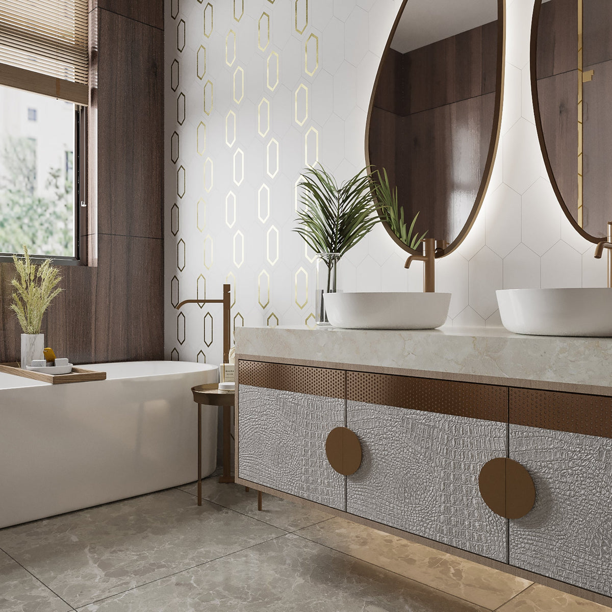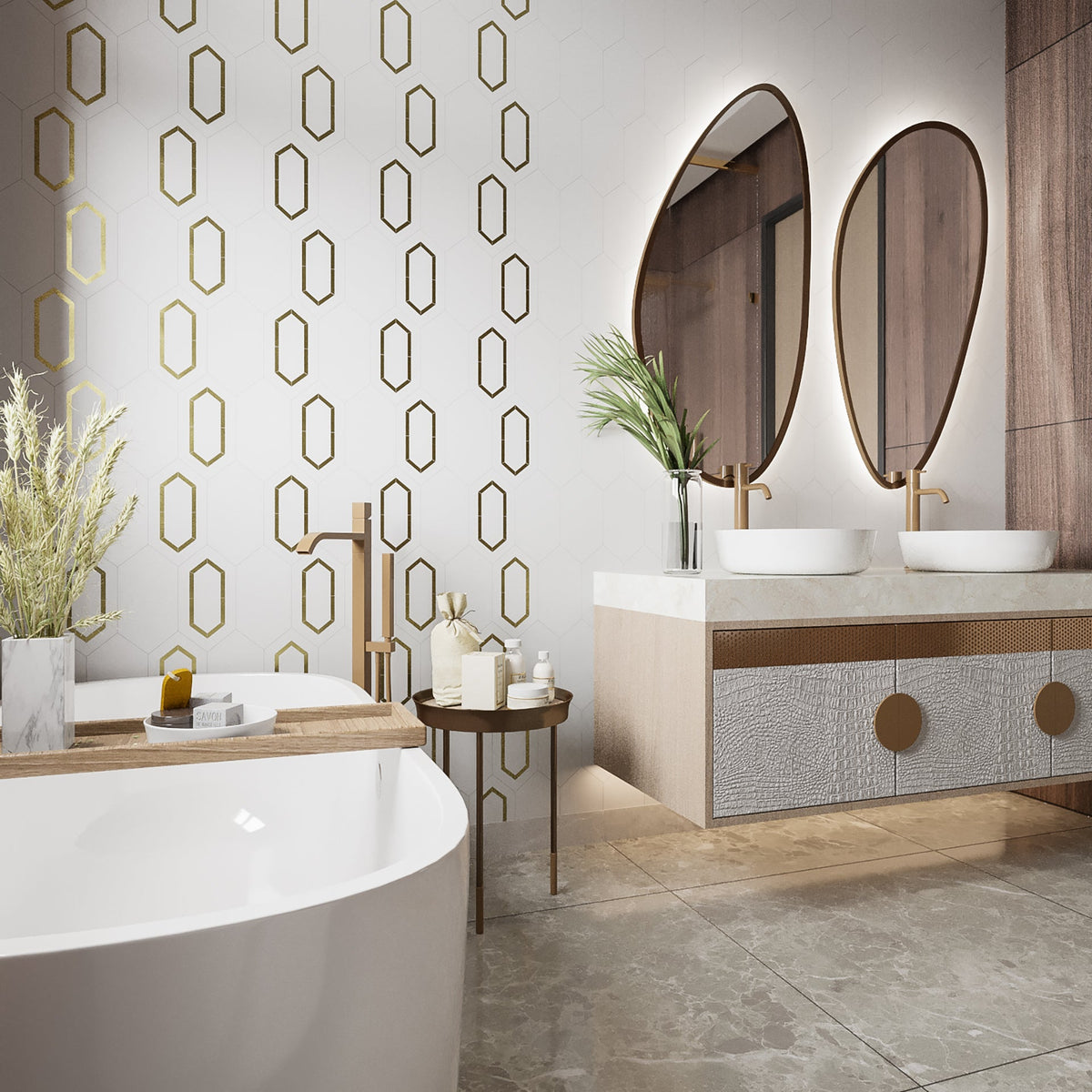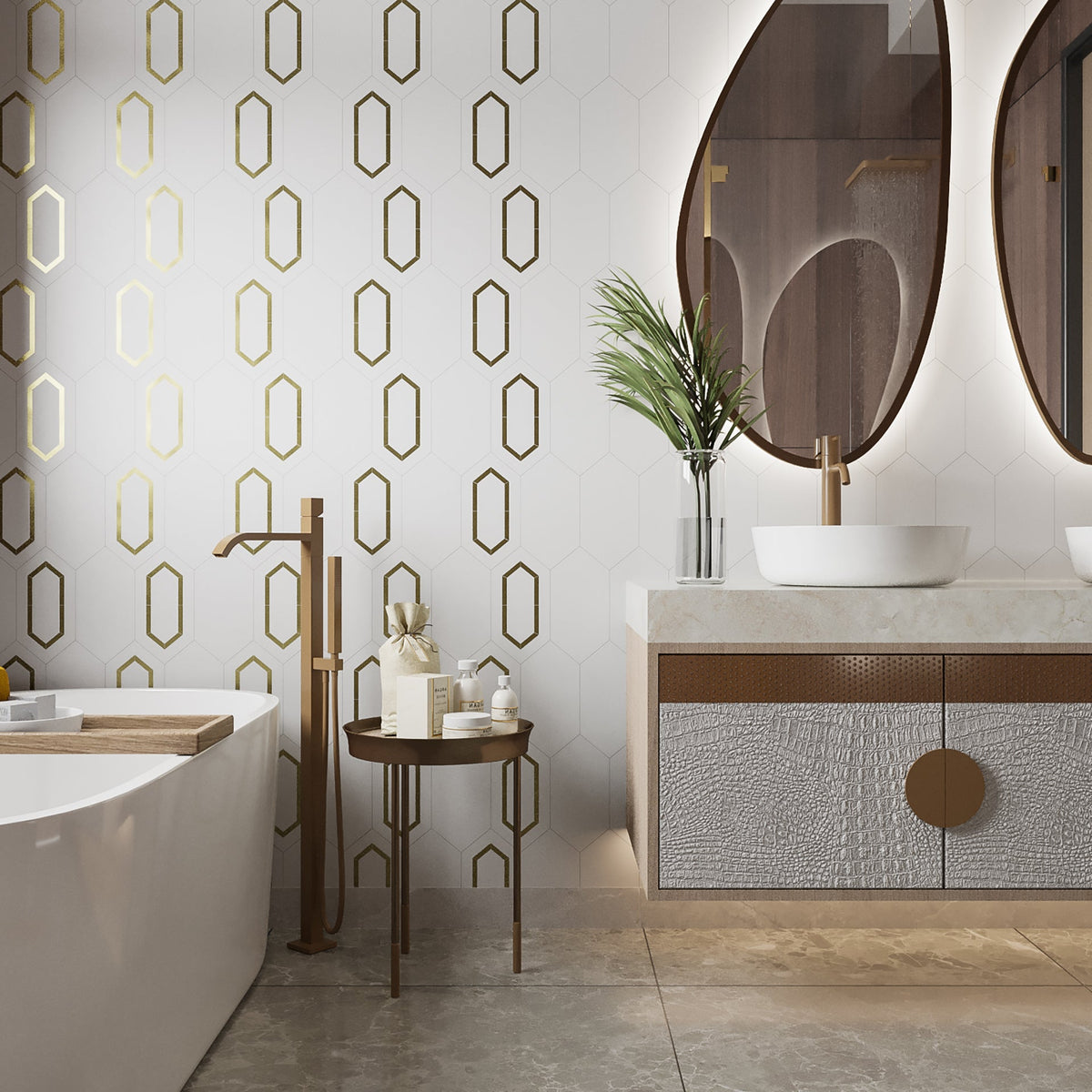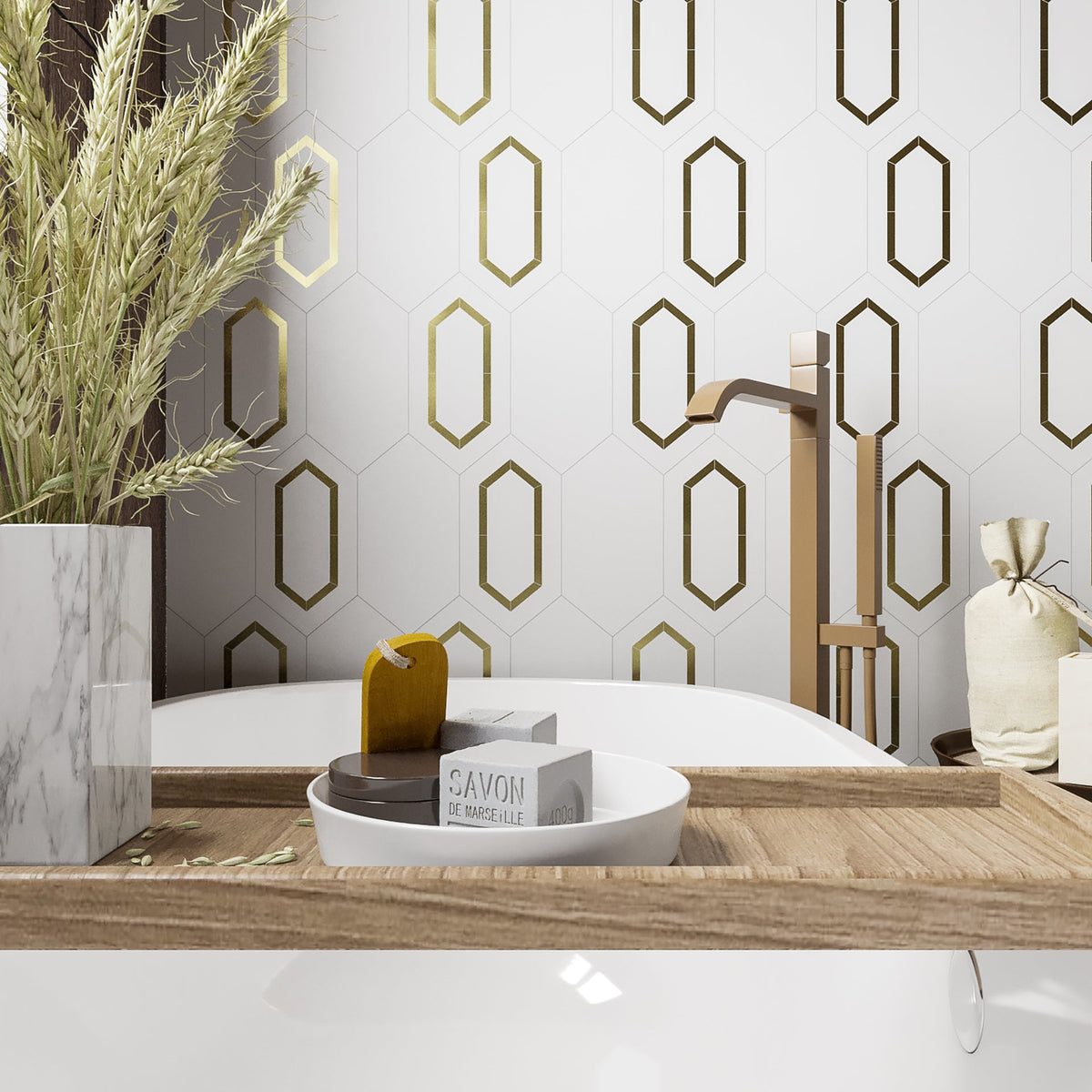Tiffany Brass Elite 5” x 10” Hexagon Floor & Wall Tile
