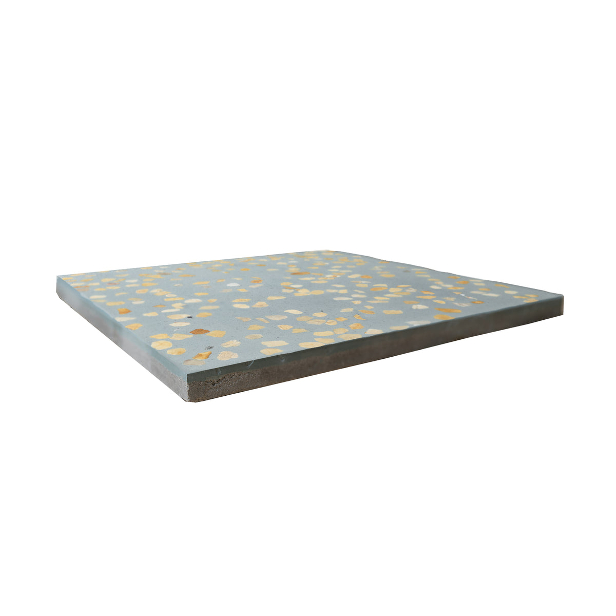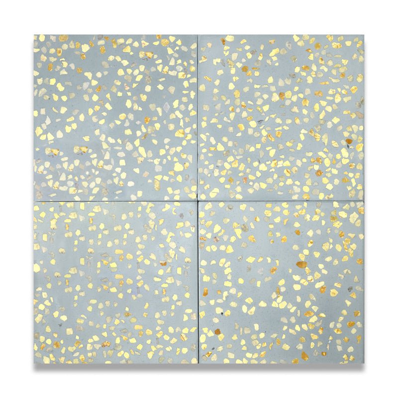 Our Ember Terrazzo 8x8 Cement tile from the Alpine Terrazzo Collection radiates warmth and elegance with its soft blue-gray base, highlighted by striking flecks of golden amber and ivory. The delicate contrast of colors evokes the glow of embers against a serene backdrop, creating a design that feels both contemporary and timeless. Perfect for floors, walls, or feature spaces, Ember Terrazzo tiles bring a sense of refined sophistication and natural beauty to any interior.