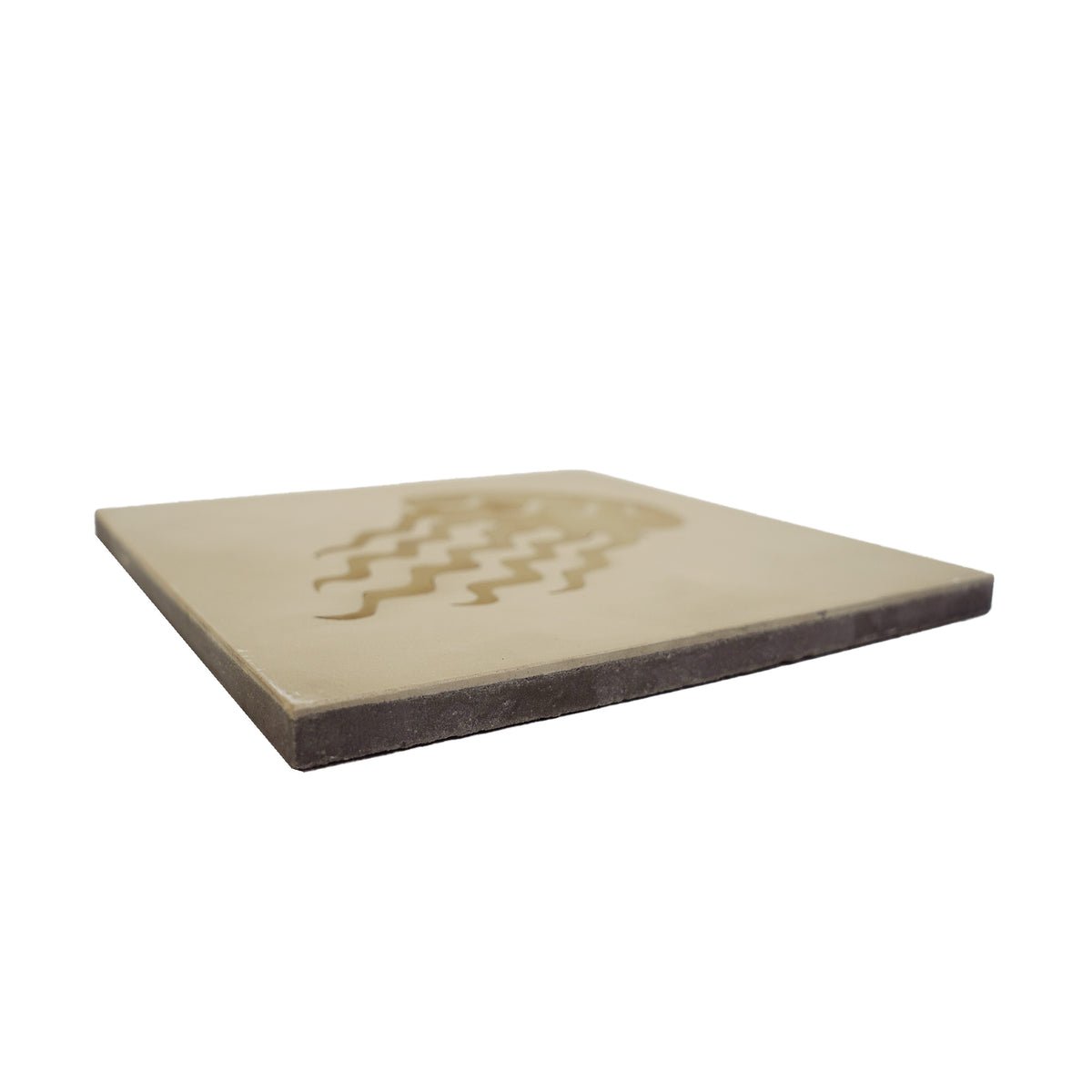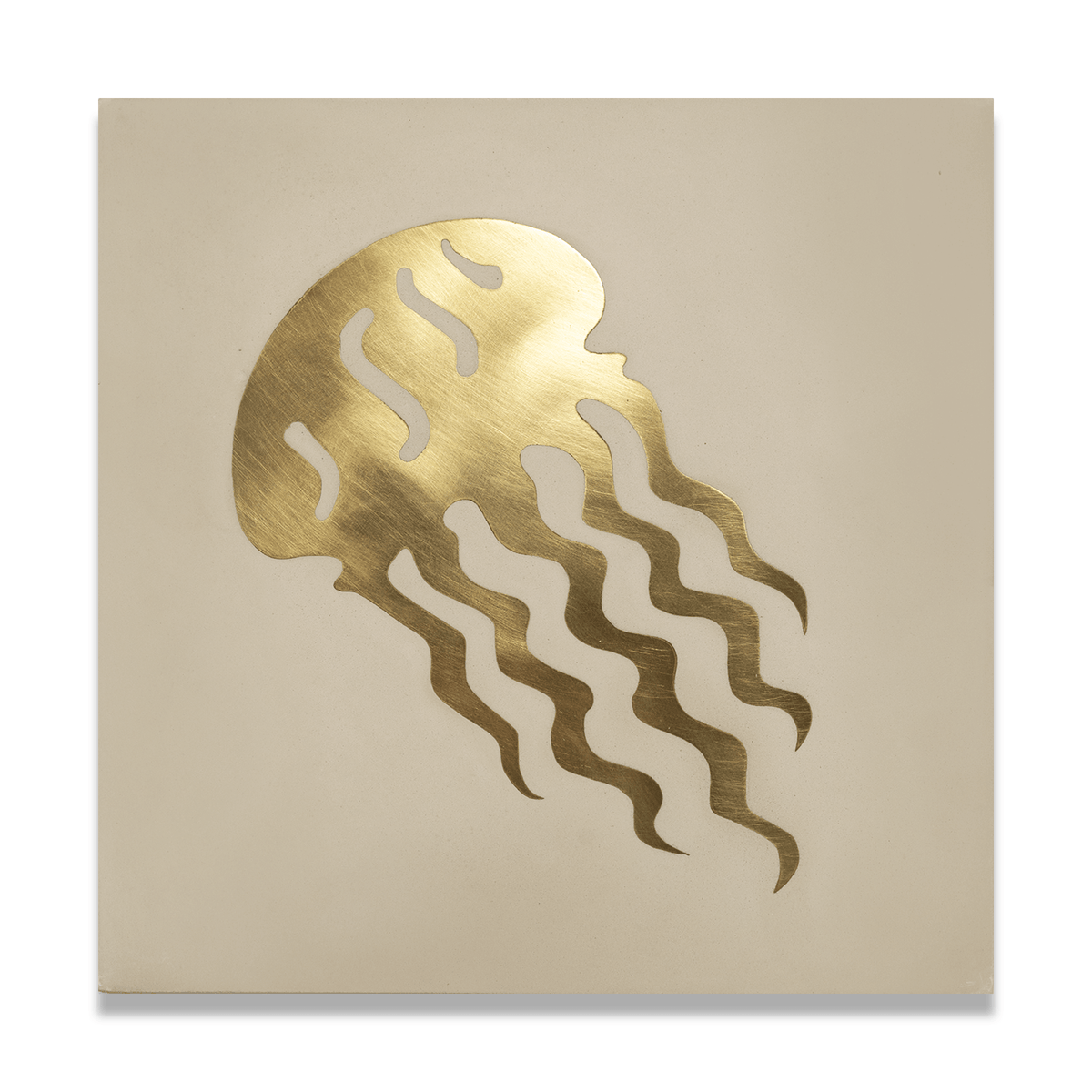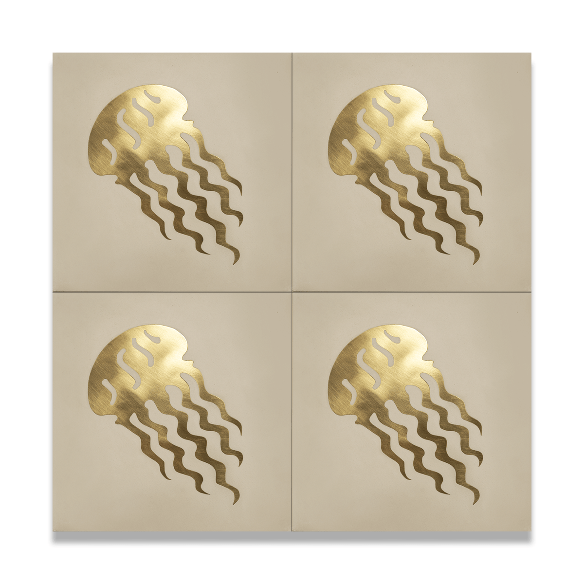 Jellyfish 3 and Jellyfish 4 bring the ocean’s quiet beauty to life with their flowing, organic forms and shimmering brass accents. Inspired by the graceful drift of a jellyfish through deep waters, these 8x8 handcrafted cement tiles create a sense of rhythm and fluidity, transforming any surface into a living work of art.