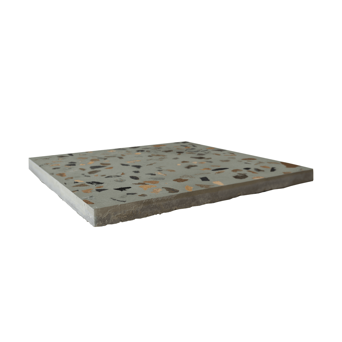 Our Lava Terrazzo Cement tile from the Alpine Terrazzo Collection brings bold sophistication to any space with its deep gray base adorned with striking flecks of black, gold, and earthy tones. The dynamic interplay of colors evokes the raw beauty of molten lava cooling into stone, creating a rich and textured surface. Perfect for dramatic floors, statement walls, or unique accent areas, the 8x8 Lava Terrazzo tile combines durability with an edgy, contemporary aesthetic.