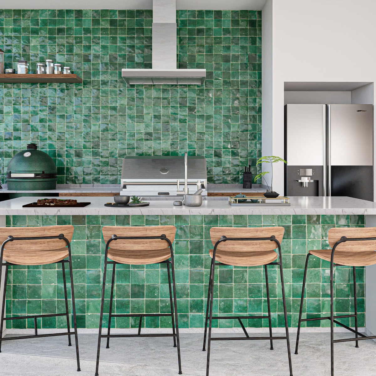 Add a bold touch of nature to your space with our Beetle Green Zellige Tile in a 4x4 square format. Handcrafted from authentic Moroccan clay, these Zellige tiles feature a deep, vibrant green with natural variations that create depth and intrigue. Perfect for kitchens, bathrooms, or accent walls, their rich color and artisanal texture bring timeless elegance and a hint of the outdoors into your home. Let the Beetle Green Zellige Tile transform your space into a lush, inviting retreat.