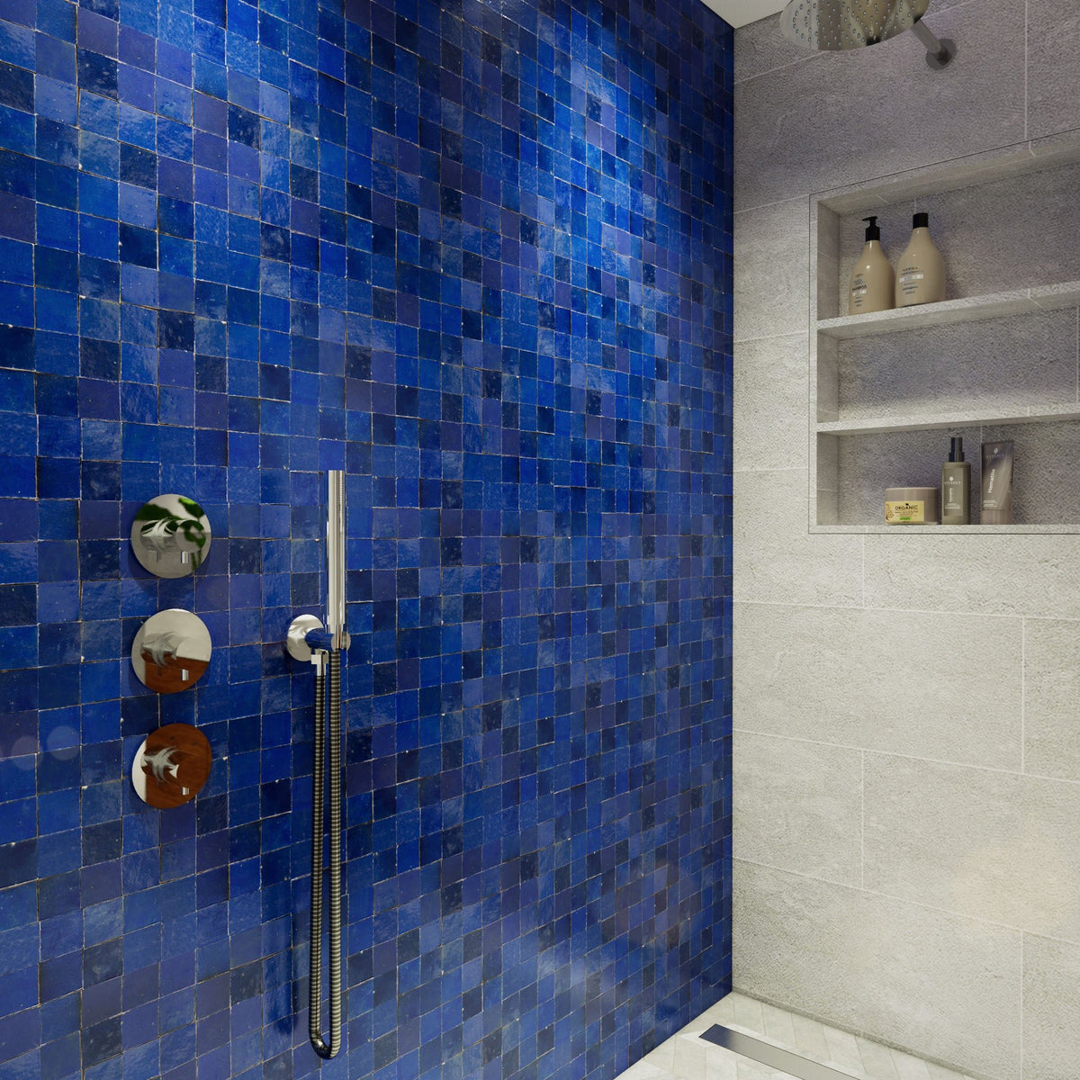 Maintenance: Zellige tiles are low maintenance. Clean tiles with mild soap and water.