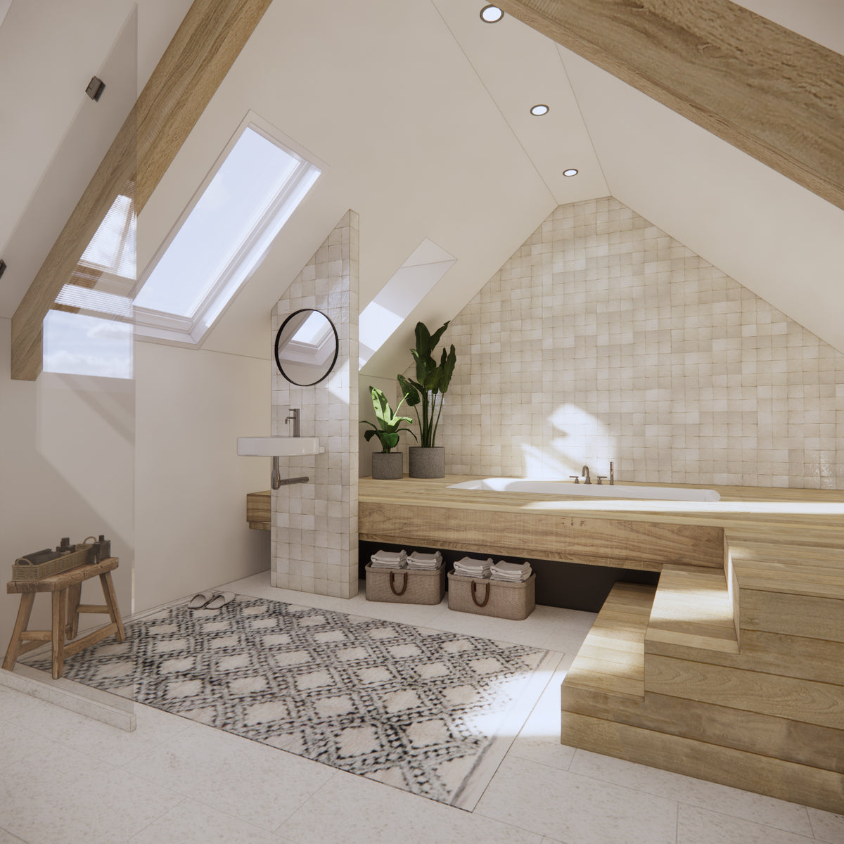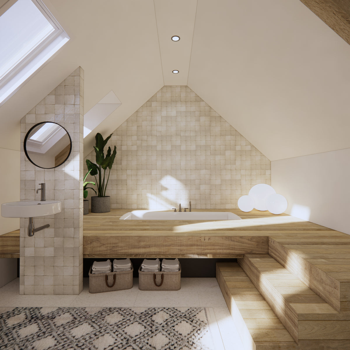 Maintenance: Zellige tiles are low maintenance. Clean tiles with mild soap and water.